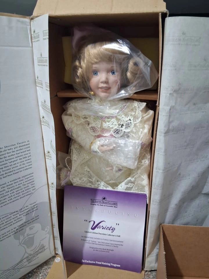 Buy & SellCollectable ASHTON-DRAKE Porcelain DollsCollectable ASHTON-DRAKE Porcelain Dolls$60BNIB "Variety" 1998 Ashton-Drake Galleries porcelain dolls. 2 available unopened. $60 each or both for $100.WHERE TO MEETGlen St.View MapSELLERSherryLakeview653 reviews0 chats·0 favorites·10 viewsSEND CHAT TO SELLERHi Sherry! I’m interested in your listing.Hi Sherry! I’m interested in your listing.Get the Karrot app to chatSign In to chat