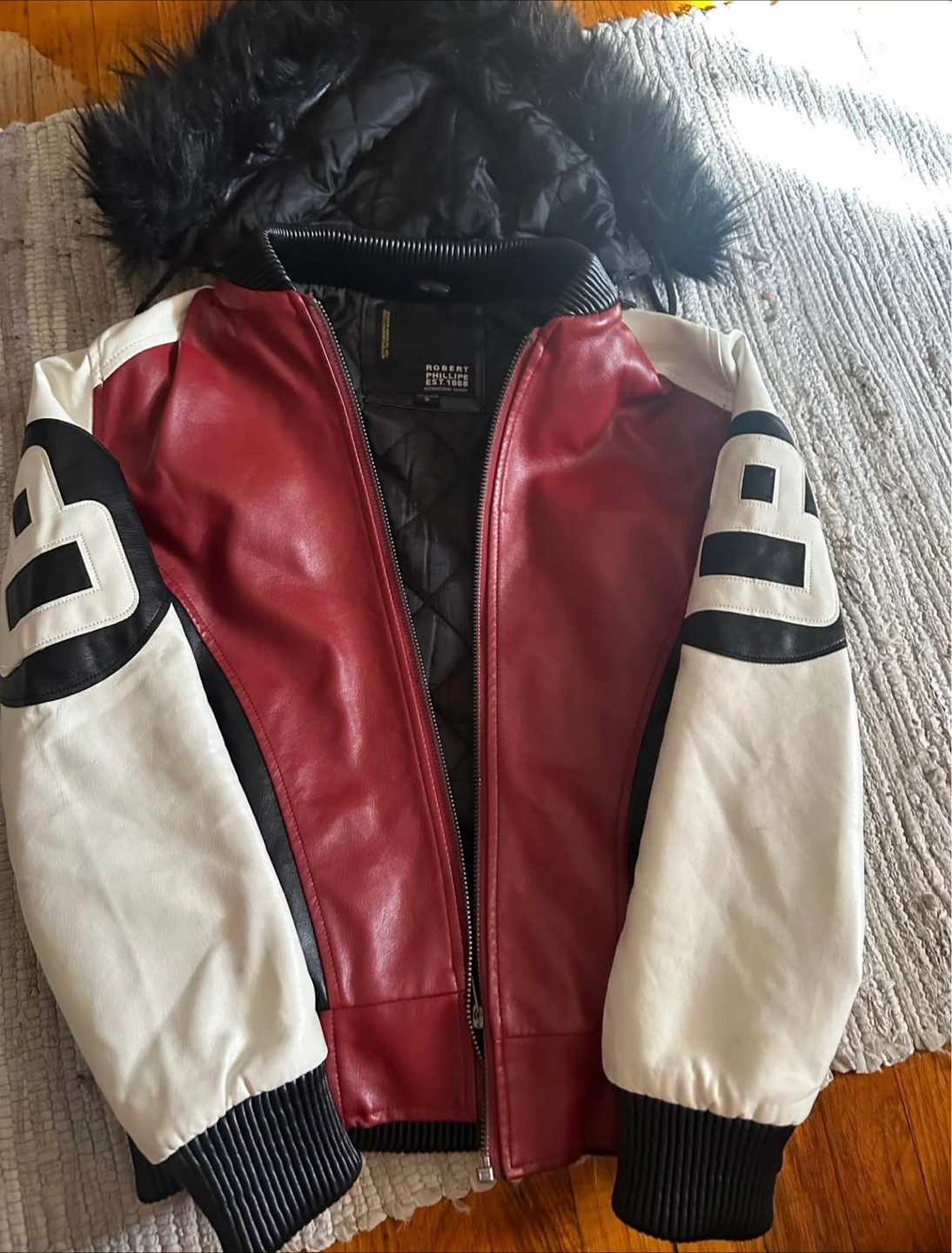 Selling a Robert Phillippe 8 Ball jacket in size S! It features a unique design with the number 8 prominently displayed. The jacket has a fur-trimmed hood and a quilted lining, perfect for staying warm and stylish.I would say it’s a unisex jacket .Pick up only,serious buyers ,Smoke free.cash