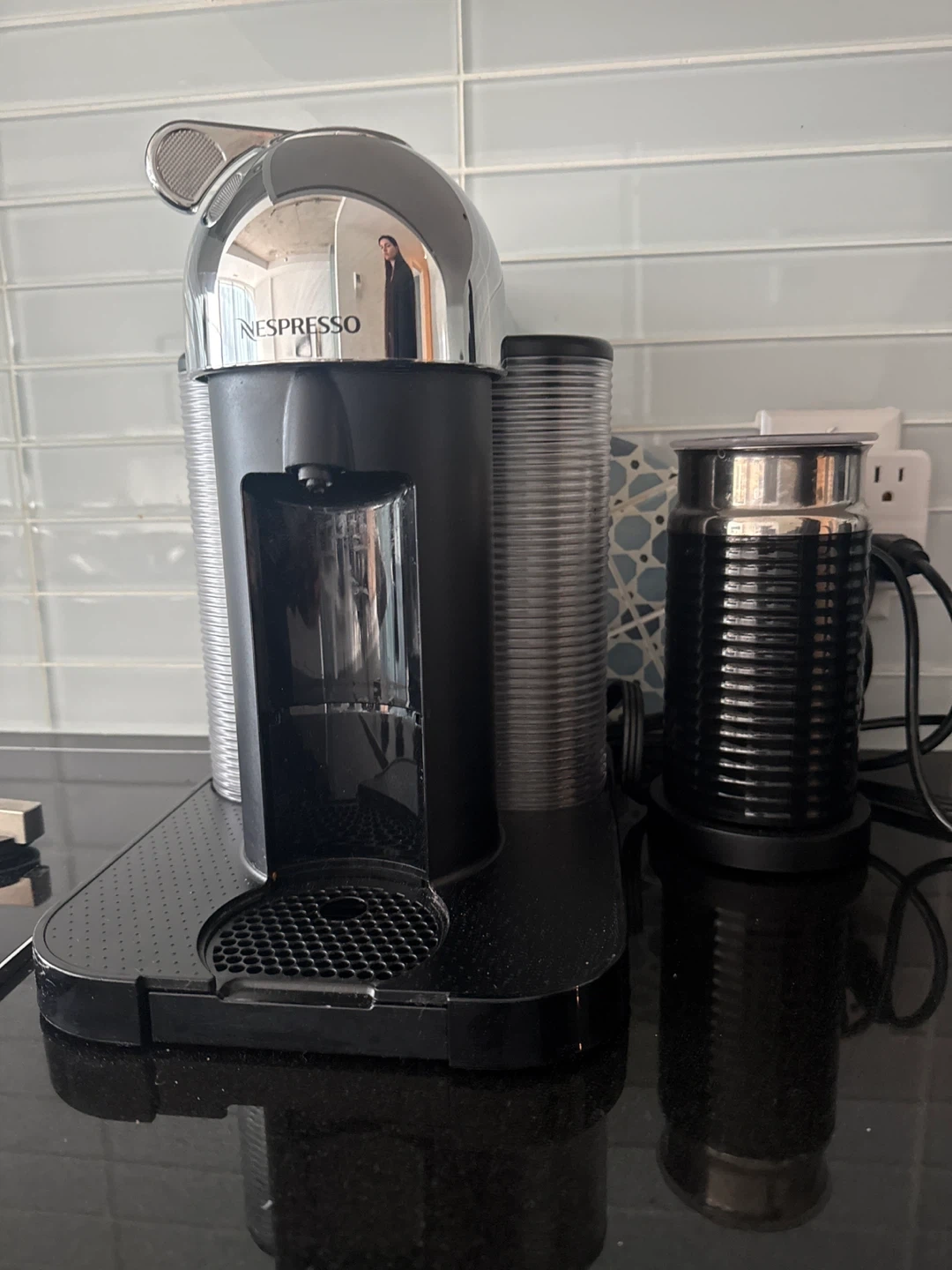Buy & SellNespresso Vertuo Coffee machine and milk frotherNespresso Vertuo Coffee machine and milk frother$70Selling a Nespresso Vertuo coffee machine and milk frother. Both in an amazing condition but I’m upgrading to a breville!ConditionLike newBrandNespressoWHERE TO MEETCheck LocationView MapSELLERverifiedLamaFashion District600 reviews5 chats·3 favorites·53 viewsSEND CHAT TO SELLERHi Lama! I’m interested in your listing.Hi Lama! I’m interested in your listing.Get the Karrot app to chatSign In to chat