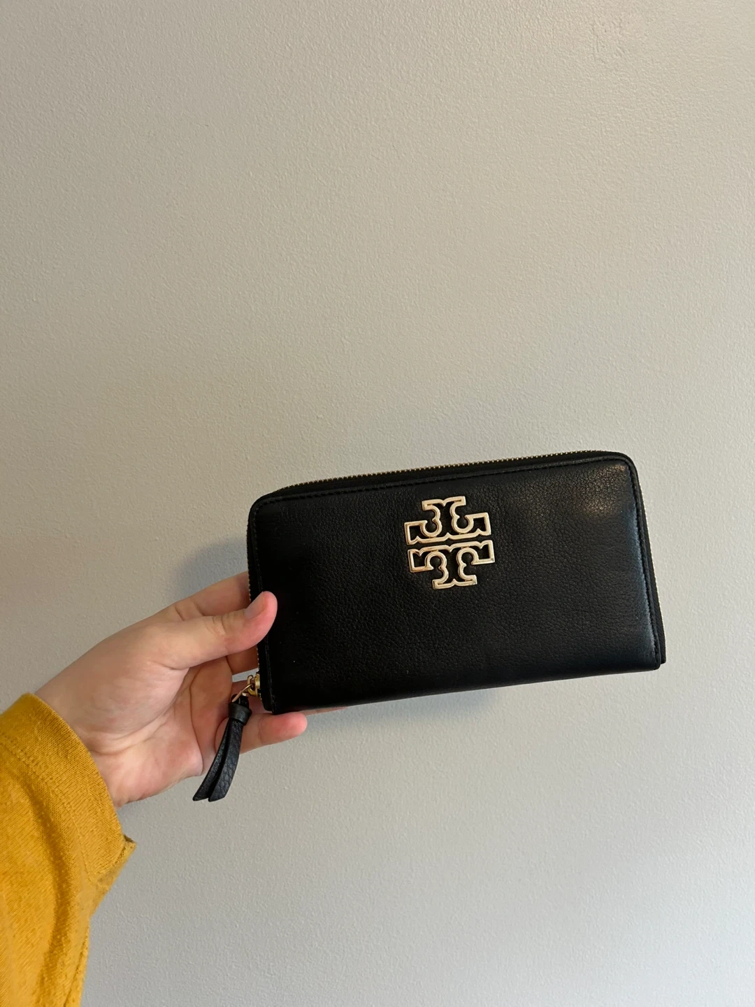 Tory Burch brand. Black zip wallet. Black leather with gold accents. Brand new condition $65