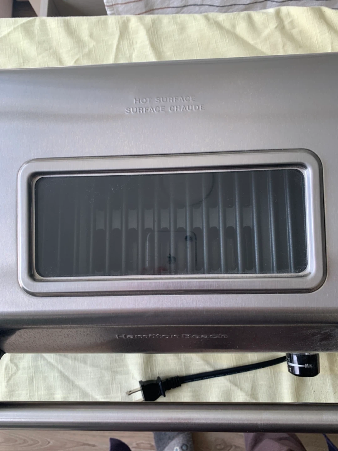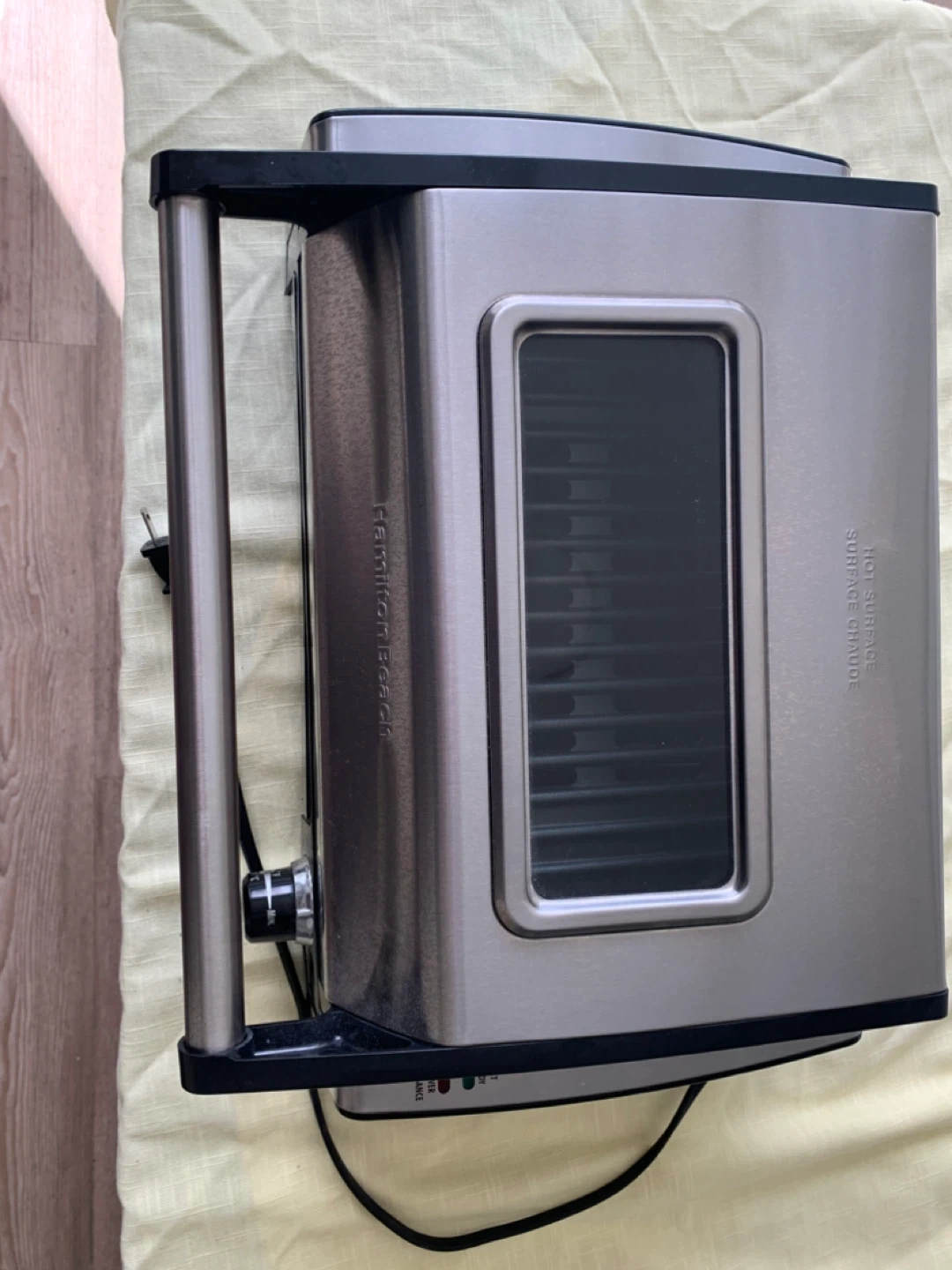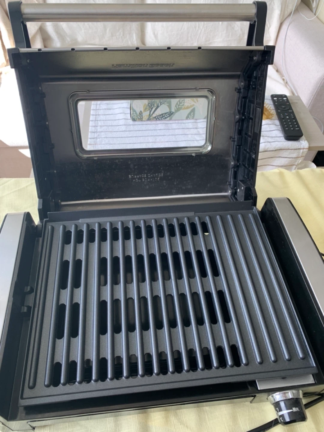Hamilton Beach indoor grill for sale. It has removable plates and a drip tray for easy cleanup. Great for year-round grilling!