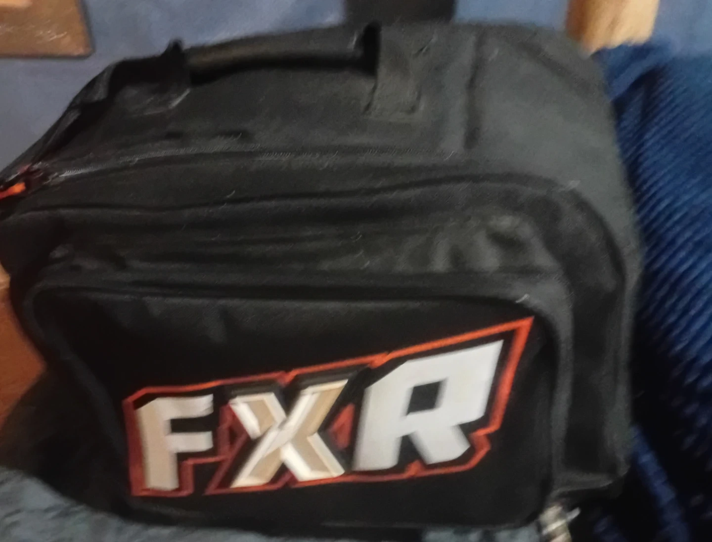 This is an FXR tool bag. It's black and durable for carrying tools or motocikle helmets. It has a handle on top for easy transport.