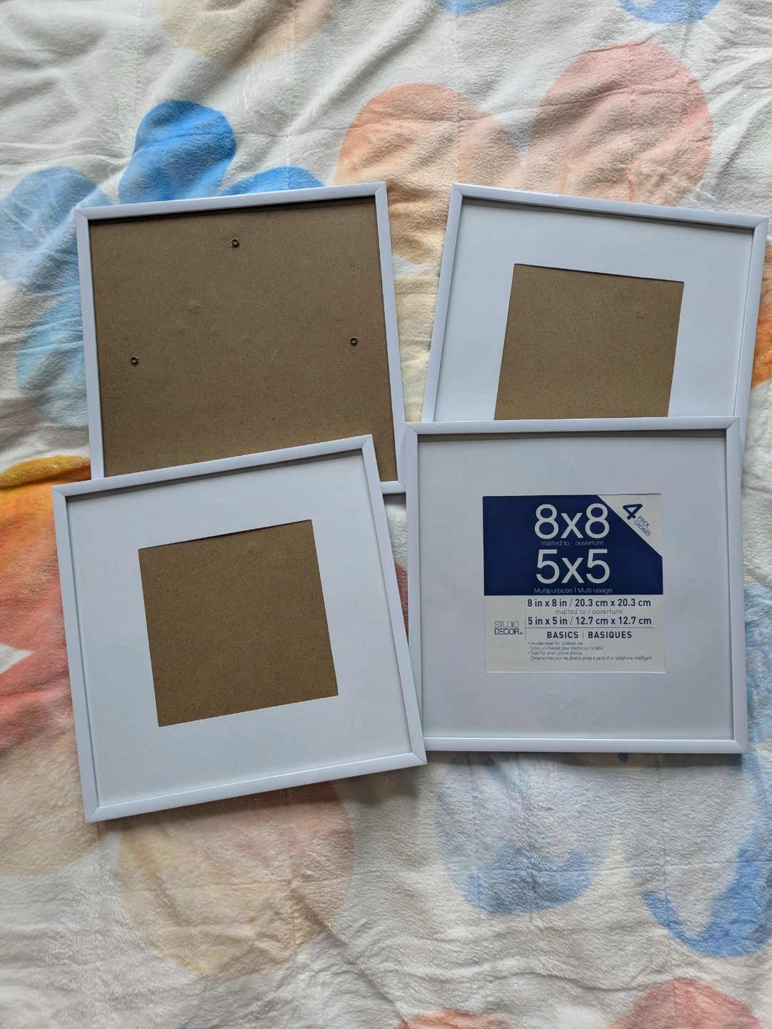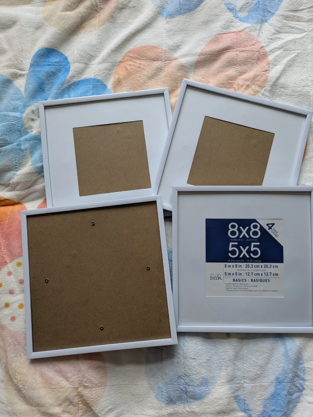 * all of my listing must be sold due to move - make me an offer!* Four white frames. Three include inner border. Perfect for displaying Instax/Polaroid photos.