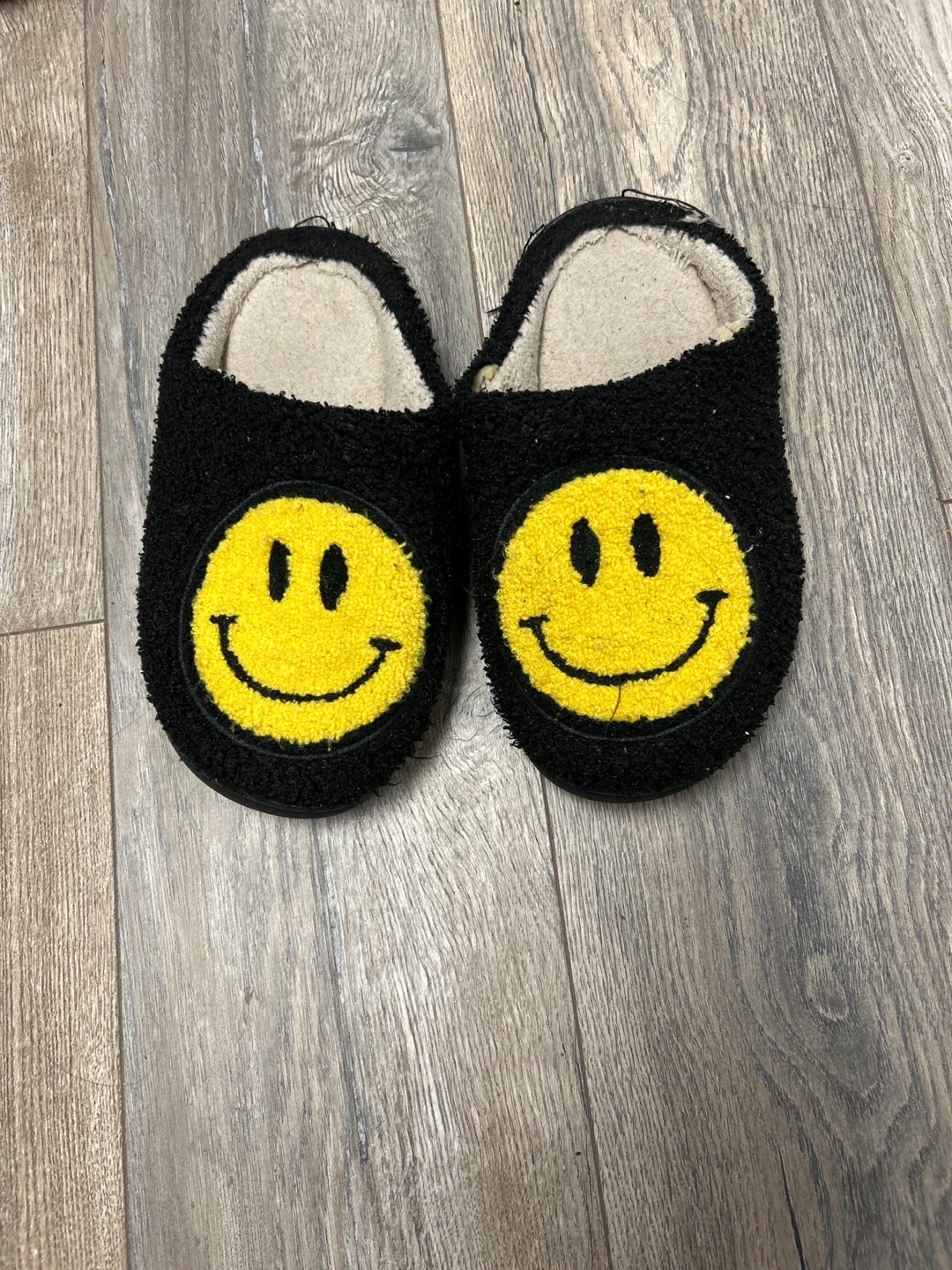 Buy & SellBlack Smiley Face SlippersBlack Smiley Face Slippers$3Cozy black slippers with yellow smiley faces. Fuzzy material for warmth. Perfect for lounging around the house!Size43-44 MWHERE TO MEETCheck LocationView MapSELLERSamAgincourt10413 reviews0 chats·1 favorites·10 viewsSEND CHAT TO SELLERHi Sam! I’m interested in your listing.Hi Sam! I’m interested in your listing.Get the Karrot app to chatSign In to chat