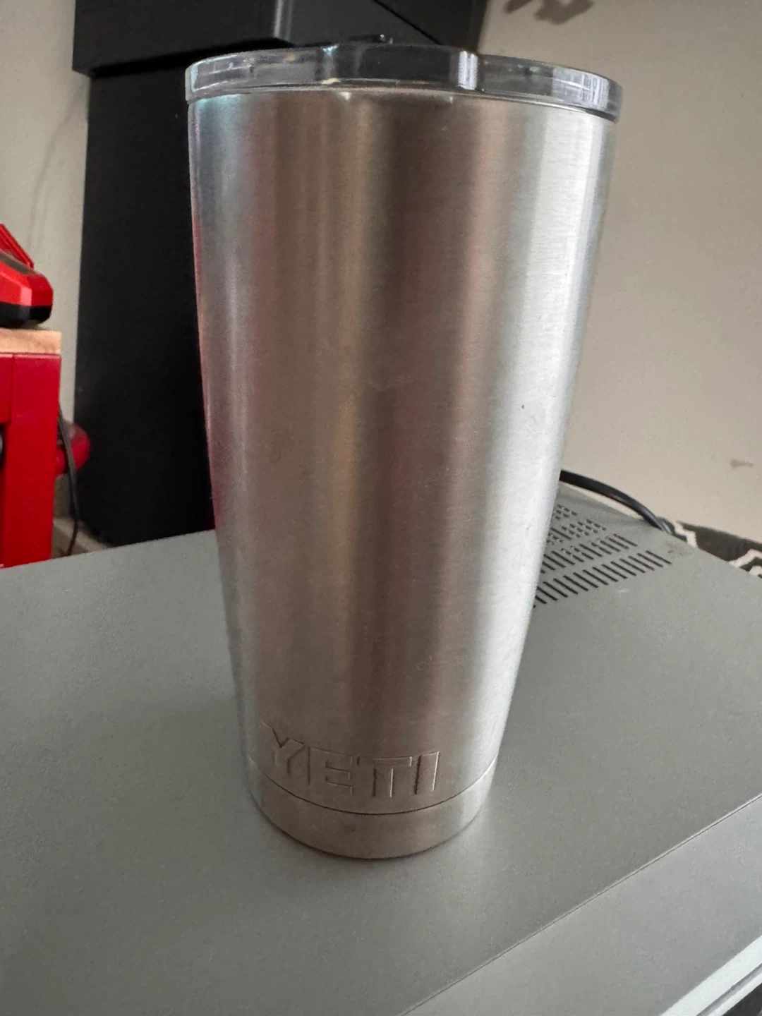 Selling a YETI tumbler made of stainless steel! It's in great condition and ready for a new home. Perfect for keeping your drinks hot or cold on the go