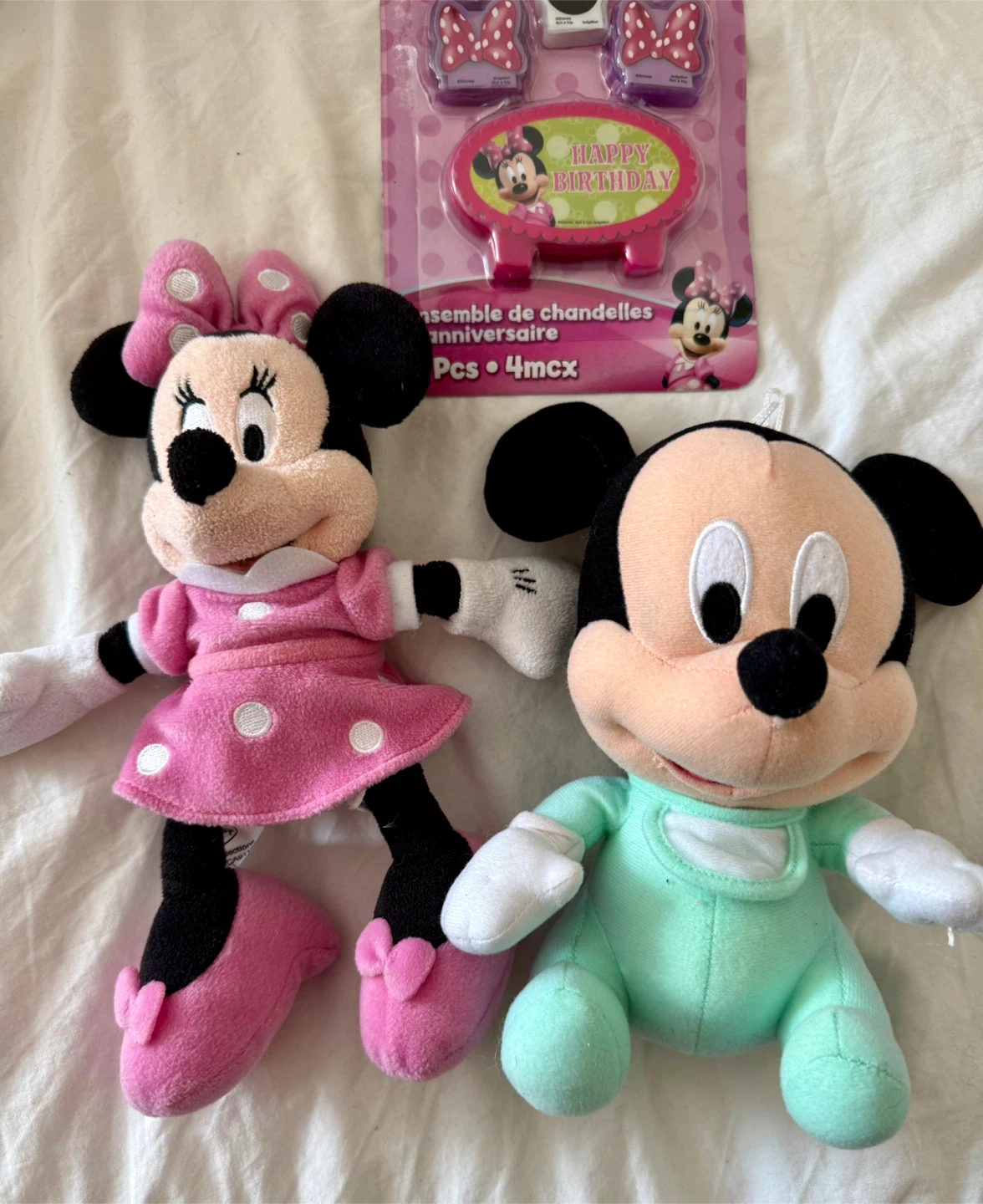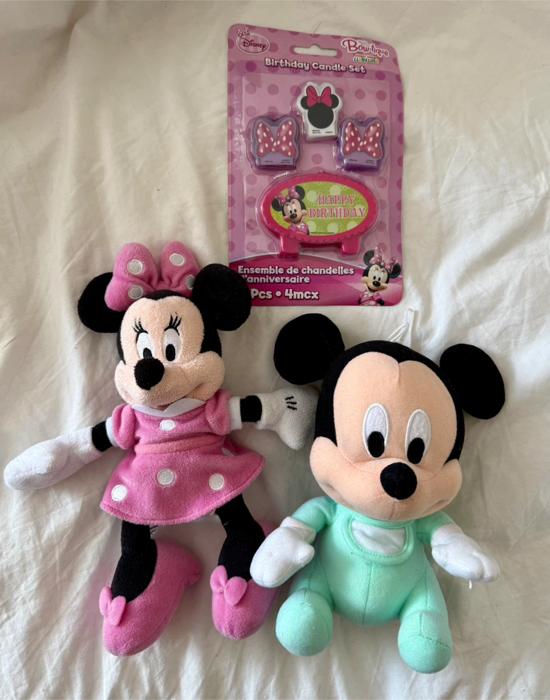 Disney Mickey and Minnie Mouse Plush with Birthday Candle Set