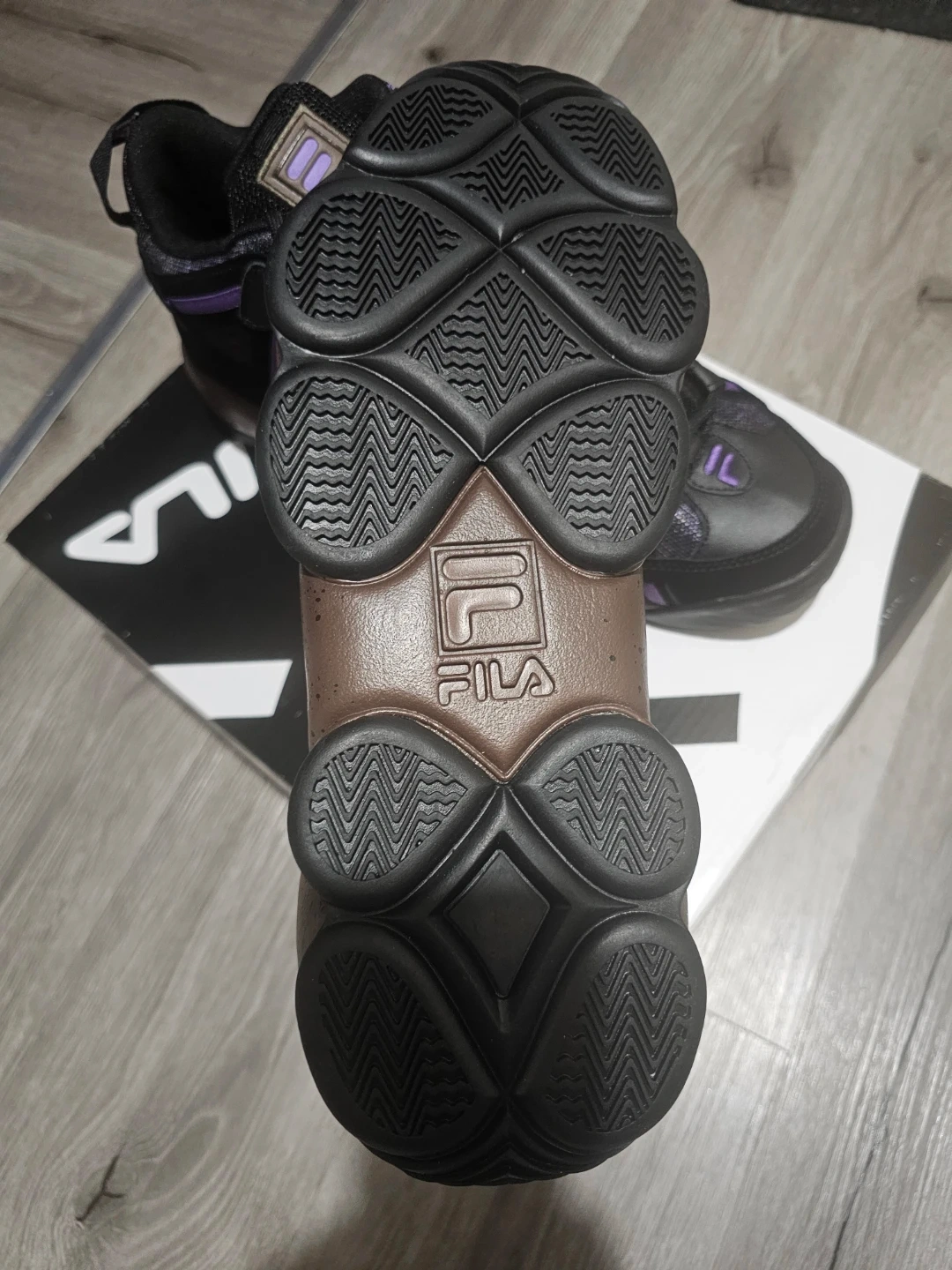 These Fila Stackhouse Spaghetti sneakers are black with purple accents. They come in a men's size 12. Includes original box.