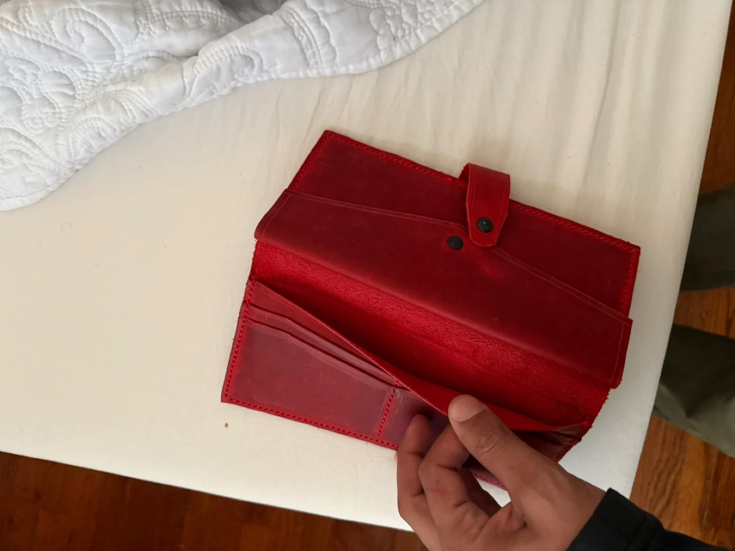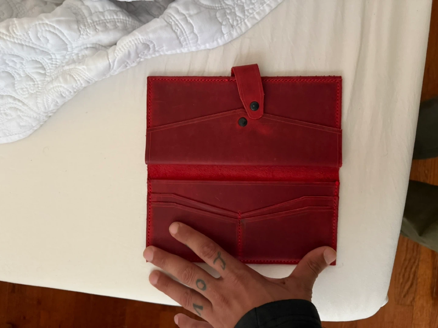 Buy & SellRed Leather WalletRed Leather Wallet$20Selling a red leather wallet. It has a button closure and several compartments for cards and cash. It's in great condition and ready for a new home!ÉtatNewWHERE TO MEETCheck LocationView MapSELLERverifiedSergenSheepshead Bay1215 reviews0 chats·0 favorites·8 viewsSEND CHAT TO SELLERHi Sergen! I’m interested in your listing.Hi Sergen! I’m interested in your listing.Get the Karrot app to chatSign In to chat