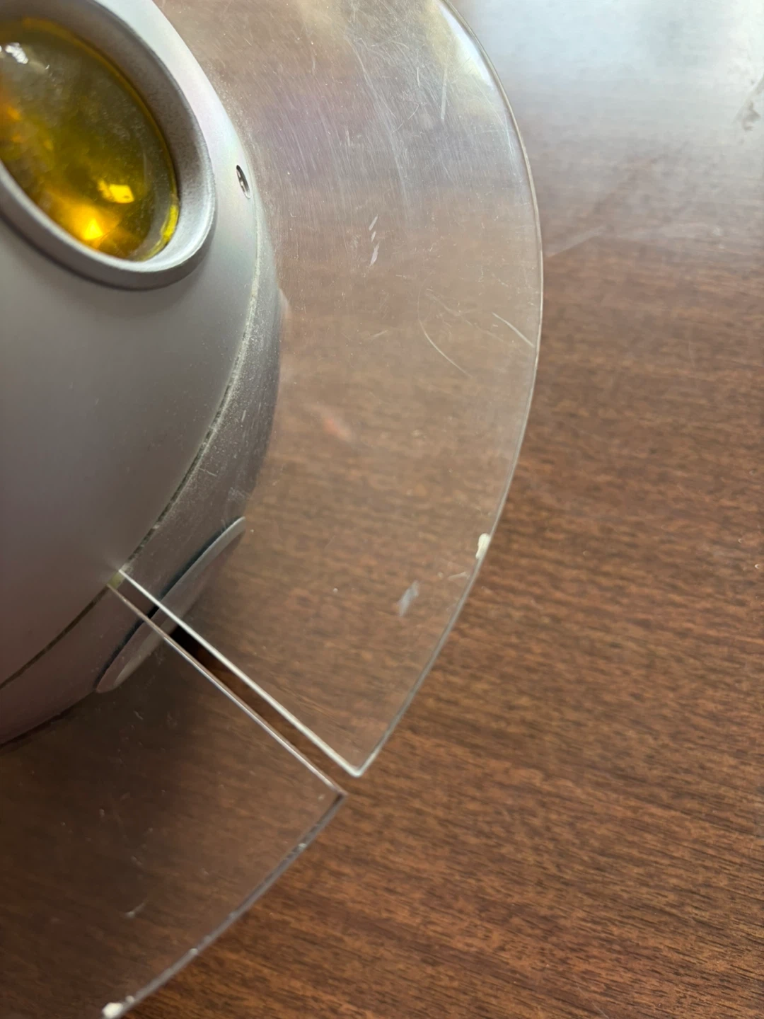 90’s/early 2000’s Ikea lamp. This fun hanging light is shaped like a planet. It has a silver-toned body with clear ring accents. A collectors item, in used condition with some slight scratching on ring as shown in photos. 15ft cord. Bulb is still in working condition and I can supply an additional one for back up!