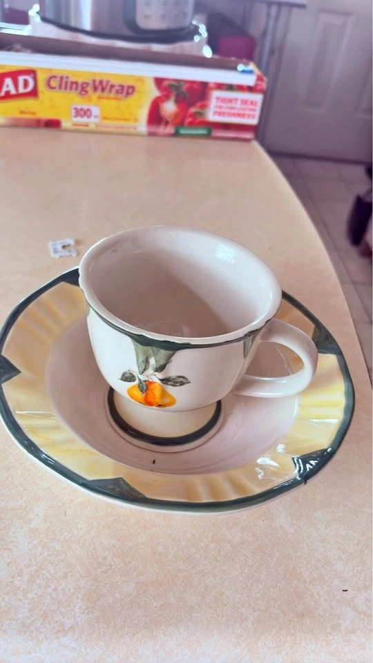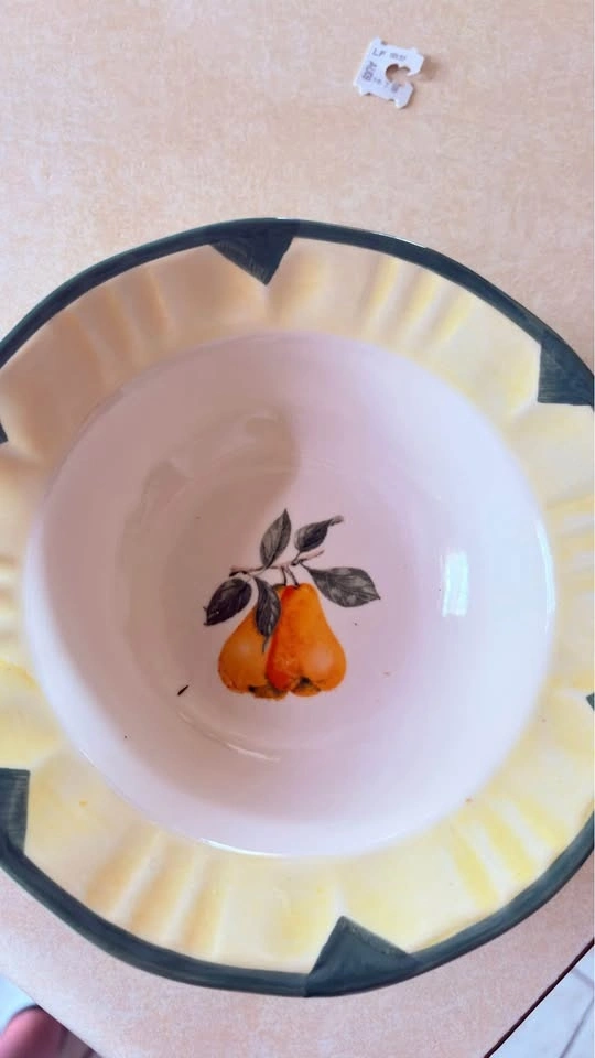 Antique Peaches bowl and cup set. Available for pickup near East 49. Cup has a diameter of 10cm, bowl has a diameter of 20cm. Price is firm. Selling 4 sets. Cannot be sold individually, must be sold all together.
