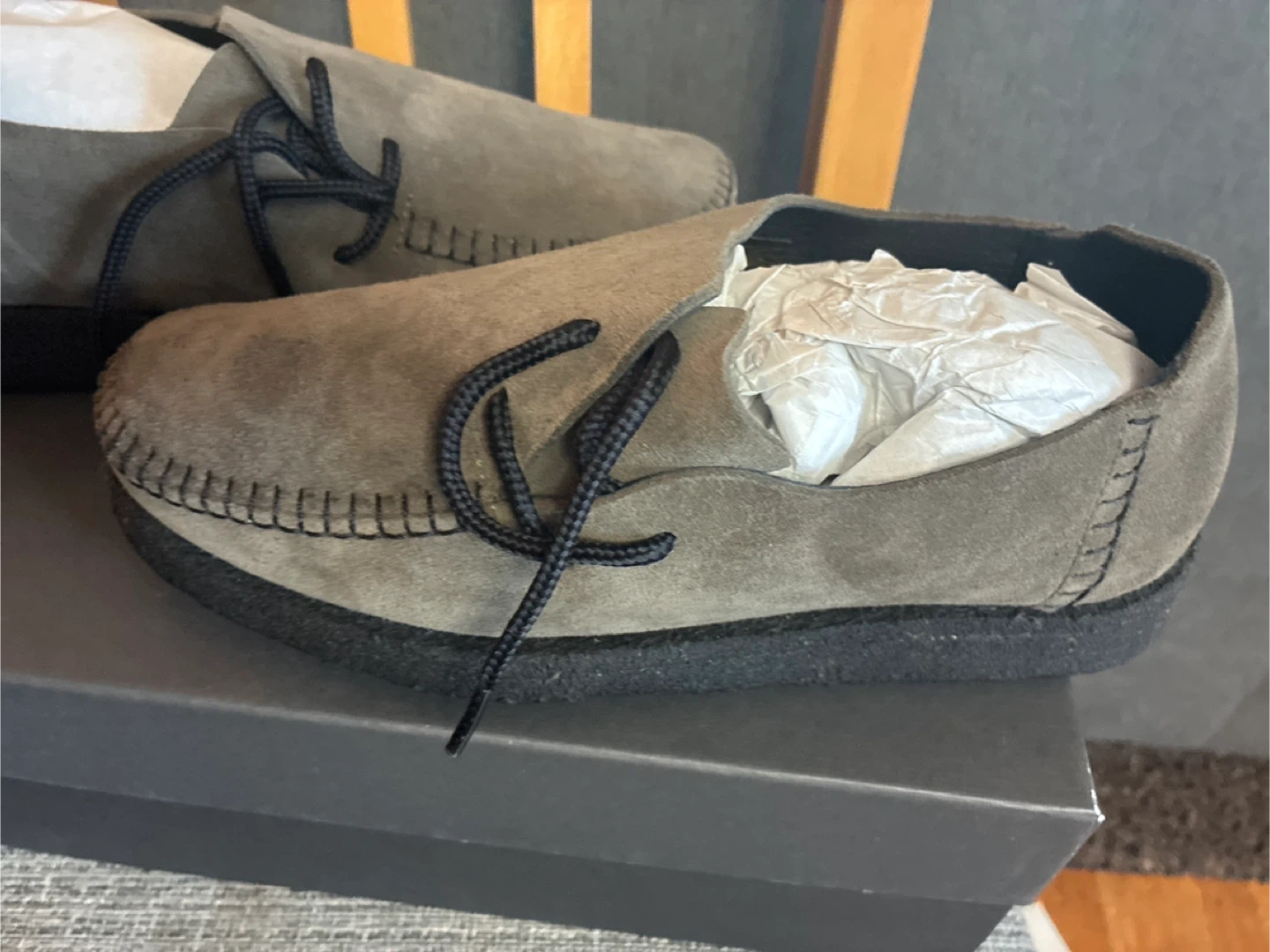 Selling a pair of Padmore & Barnes shoes in olive suede! They are brand new in the box size Men’s 8 Women’s 9.5