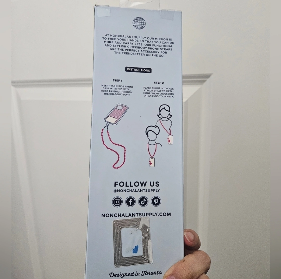 The universal tab is compatible with ALL smartphones! Turn any phone case into a crossbody phone case in 2 easy steps: Insert tab into phone case with the metal hoop passing through the charging port Place phone into case and attach the straps to the metal hoop