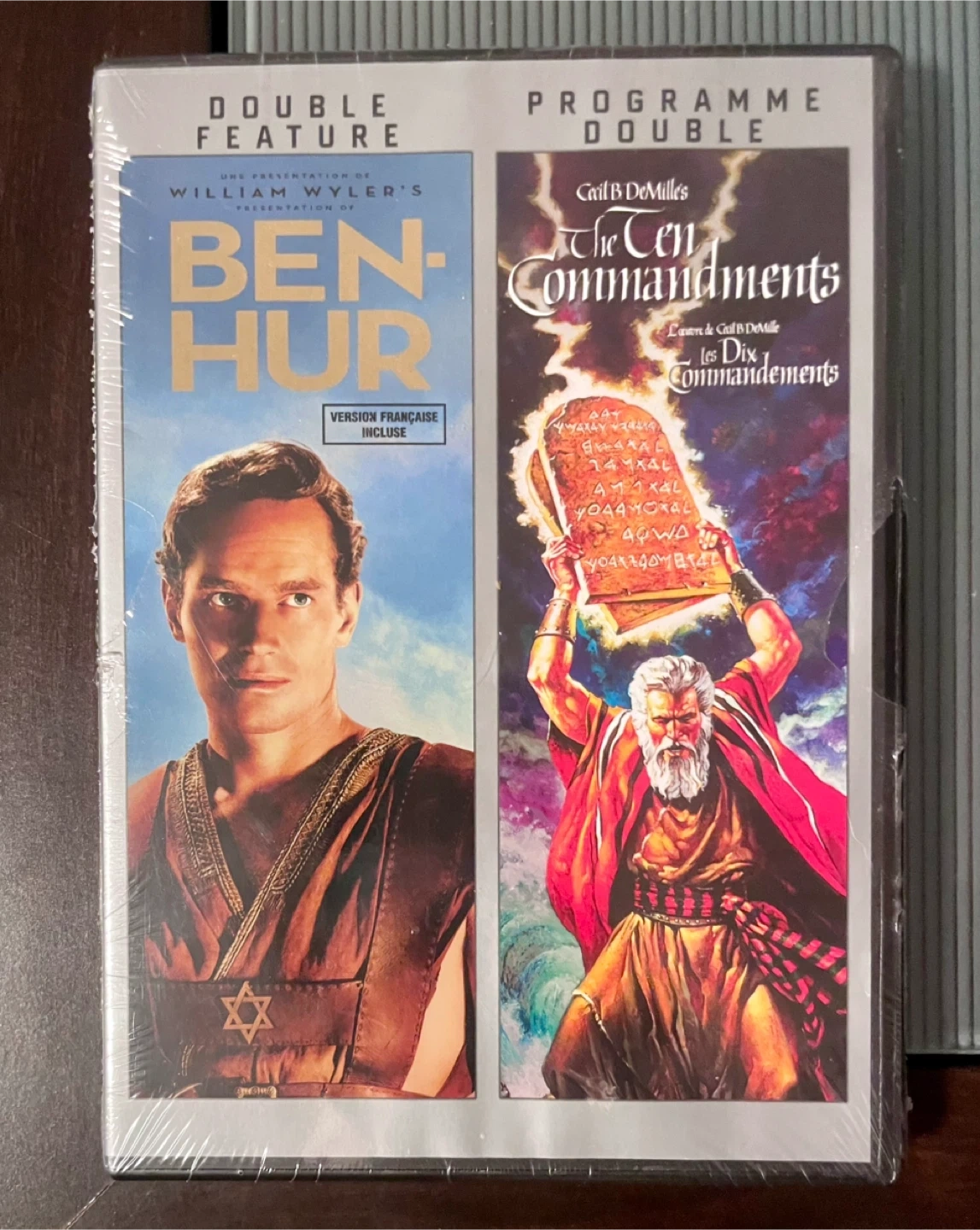 Selling a brand new, sealed double feature DVD! It includes William Wyler's Ben-Hur and Cecil B. DeMille's The Ten Commandments. A great addition to any movie collection!