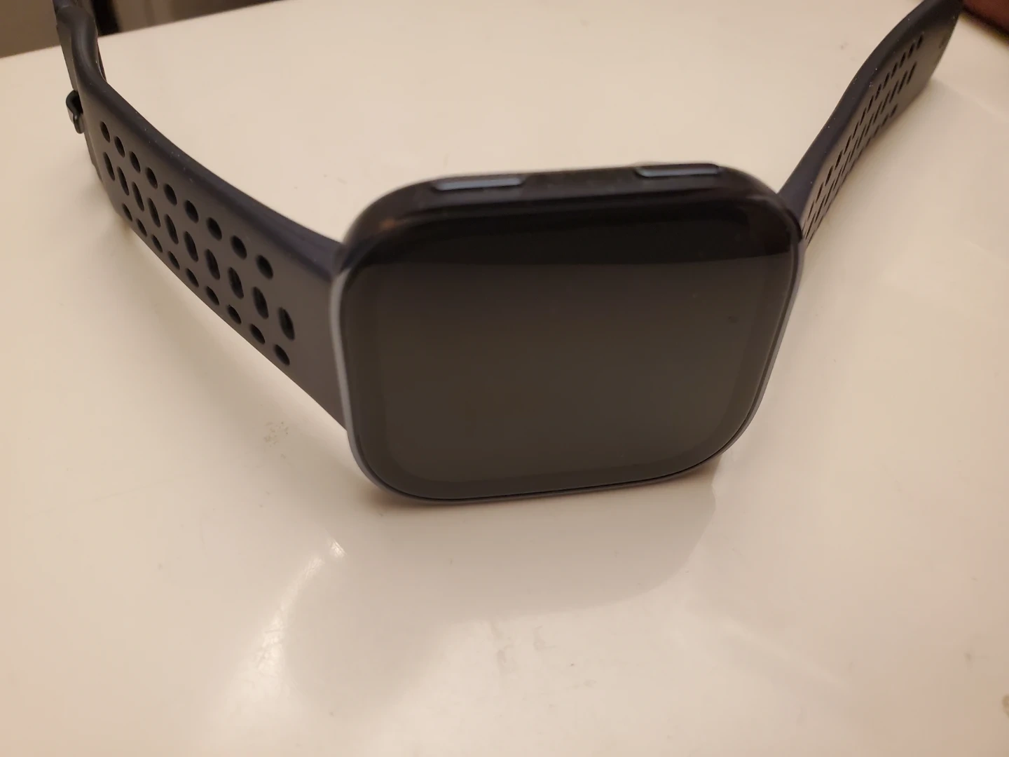 It has a digital display and a silicone band with breathable holes. This wearable tracks fitness and health metrics. Bought but barely use.