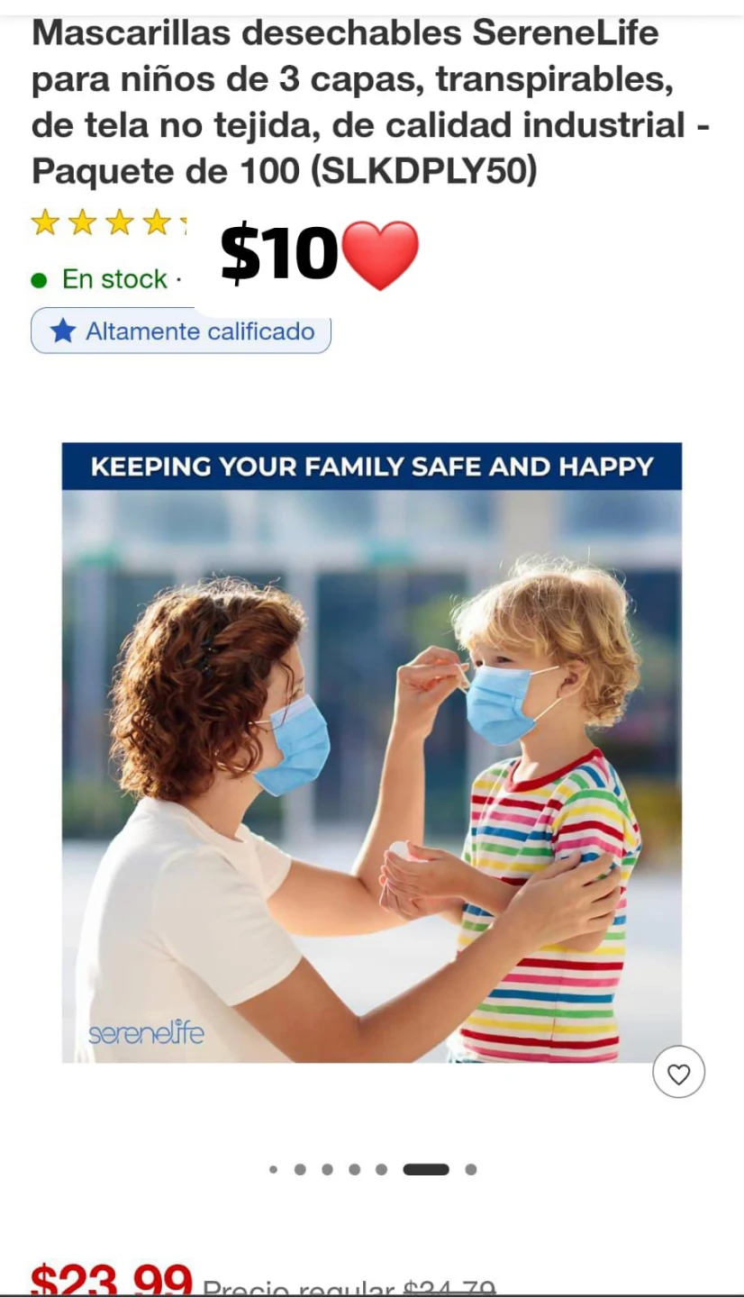 These are SereneLife disposable face masks for kids. They're made of 3-ply, breathable, non-woven fabric with industrial quality. Includes a pack of 100 masks.