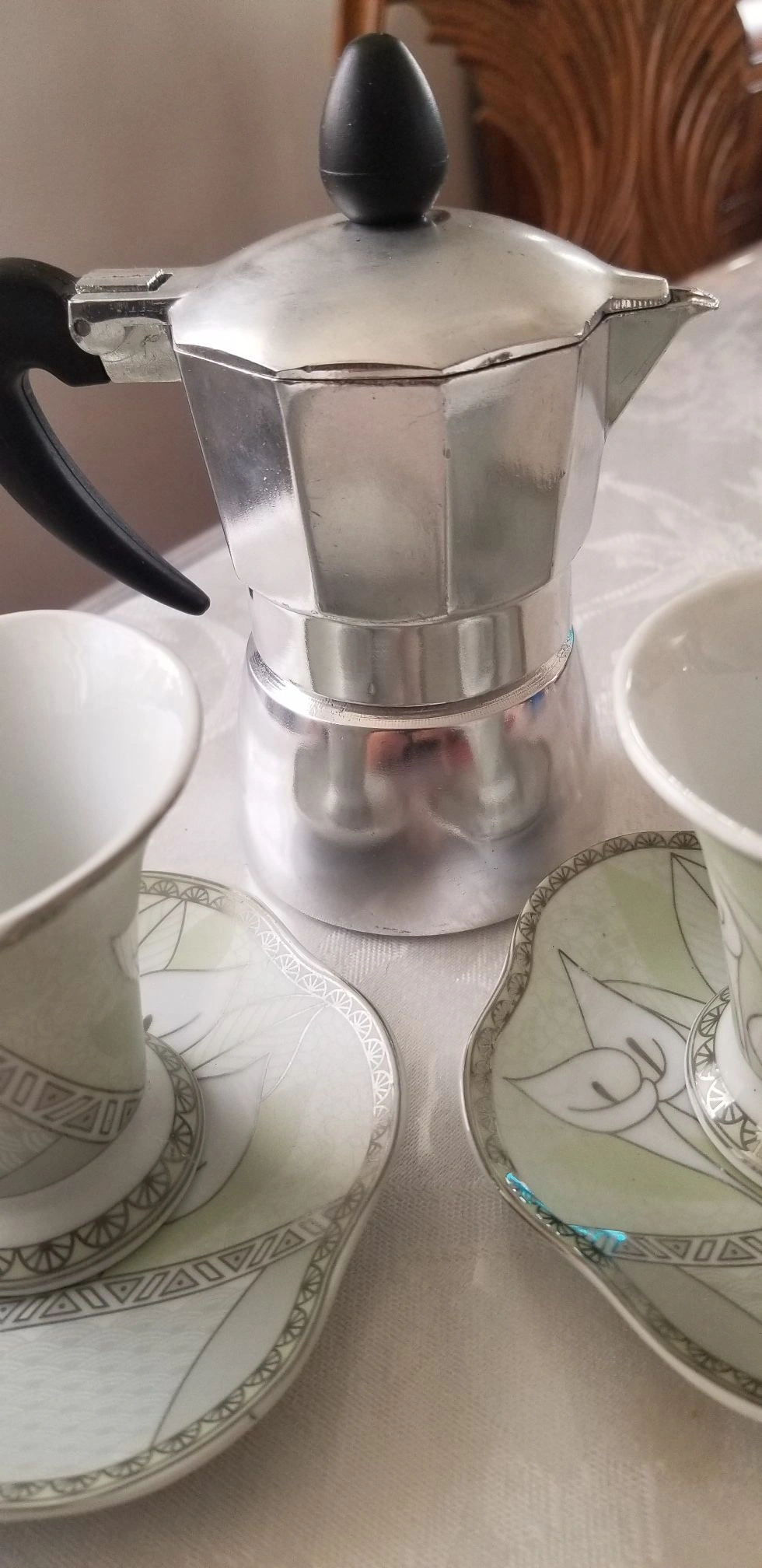 Buy & SellSet Coffee pot with cups and saucersSet Coffee pot with cups and saucers$25Never used. 5 piece set. 2 cups 2 saucers 1 mini coffee pot Mint green lily design D'Lusso home collectionWHERE TO MEETCheck LocationView MapSELLERSharronaBriarwood100 reviews0 chats·0 favorites·10 viewsSEND CHAT TO SELLERHi Sharrona! I’m interested in your listing.Hi Sharrona! I’m interested in your listing.Get the Karrot app to chatSign In to chat
