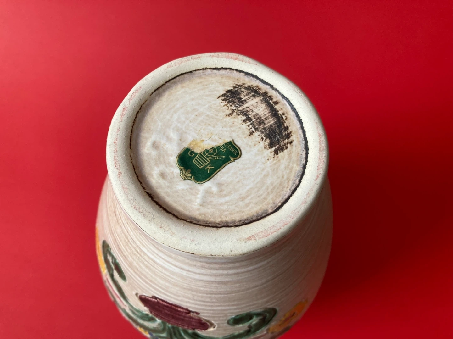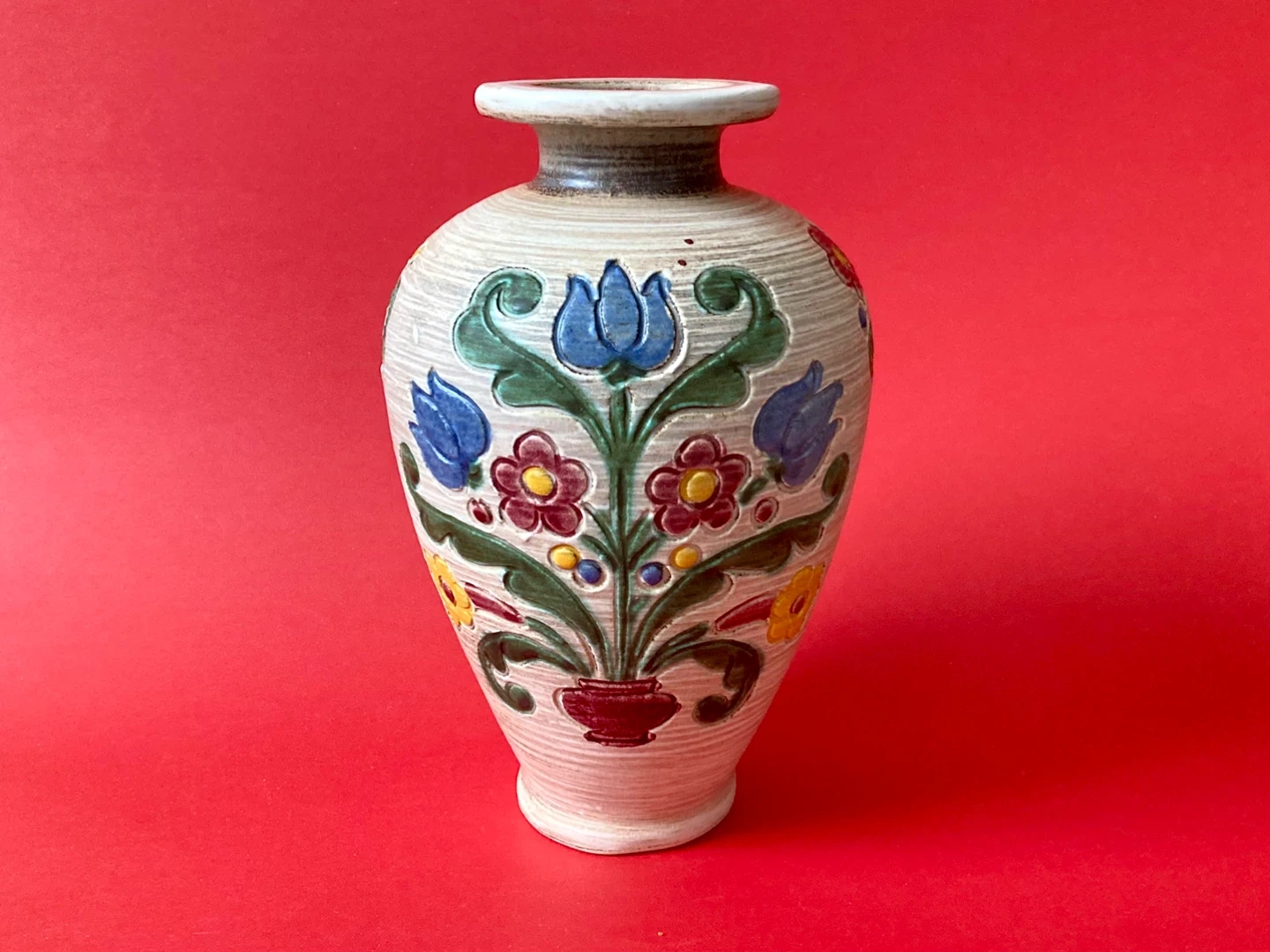 Vintage Gmundner Keramik Austrian pottery hand-painted vase dated mid-century