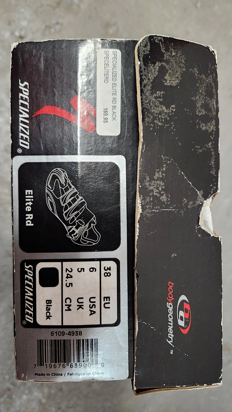 Specialized Elite Rd cycling shoes in black. These shoes are size 38 EU. They feature a three-strap ratchet closure system for a secure fit. Brand new in the box. They were bought thinking that my 38 size would work, they fit a bit too small for me.