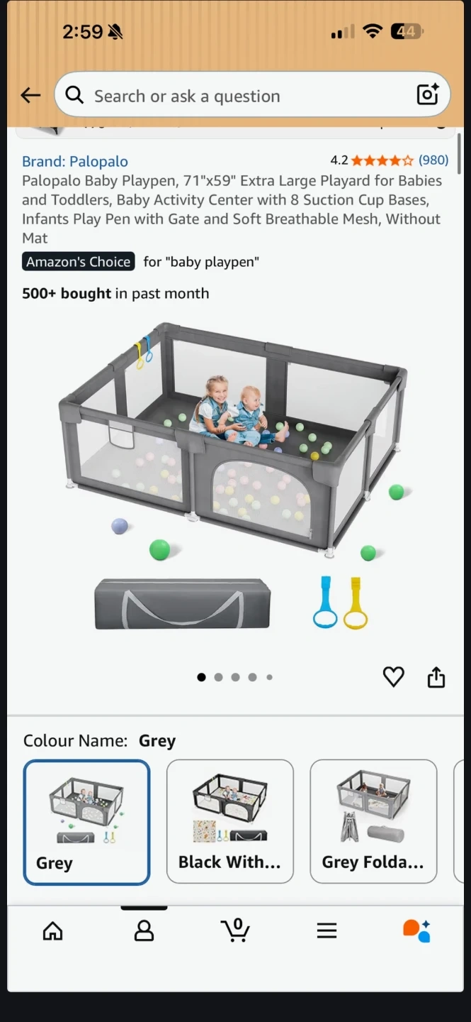 This is a Palopalo baby playpen, measuring 71 inches by 59 inches. It's an extra-large playard designed for babies and toddlers. Features include 8 suction cup bases and soft breathable mesh with a gate.