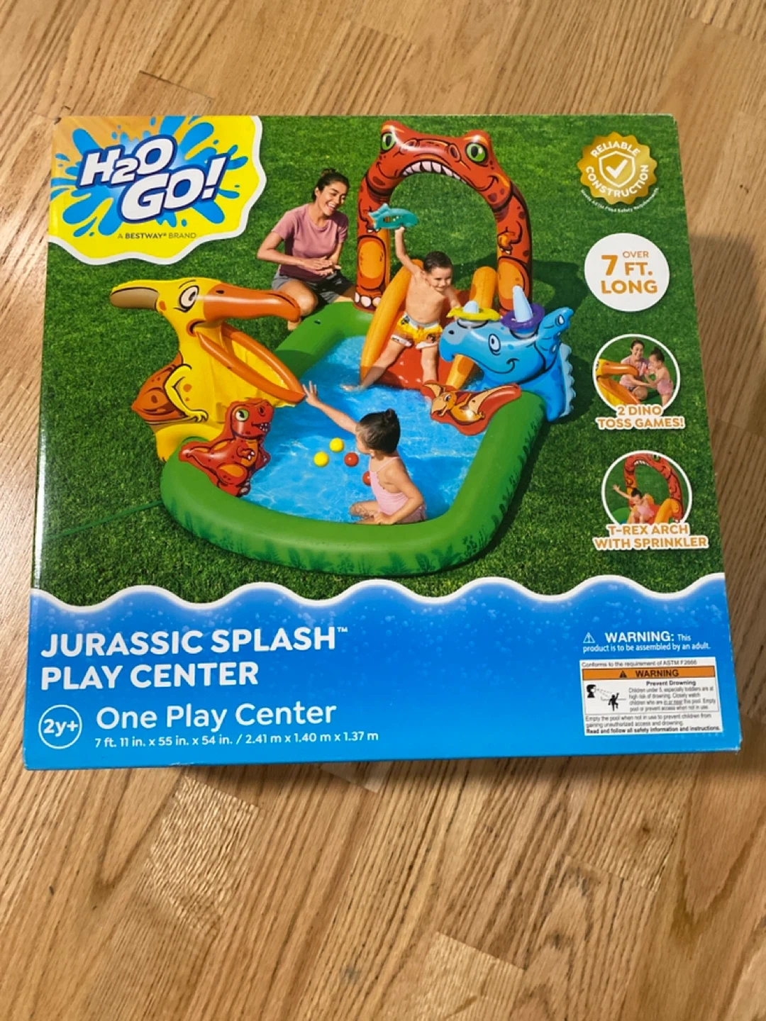 This H2O GO! Jurassic Splash Play Center offers tons of water fun! It's over 7 ft. long and features a T-Rex arch with a sprinkler. It also includes 2 dino toss games! Recommended for ages 2 and up.