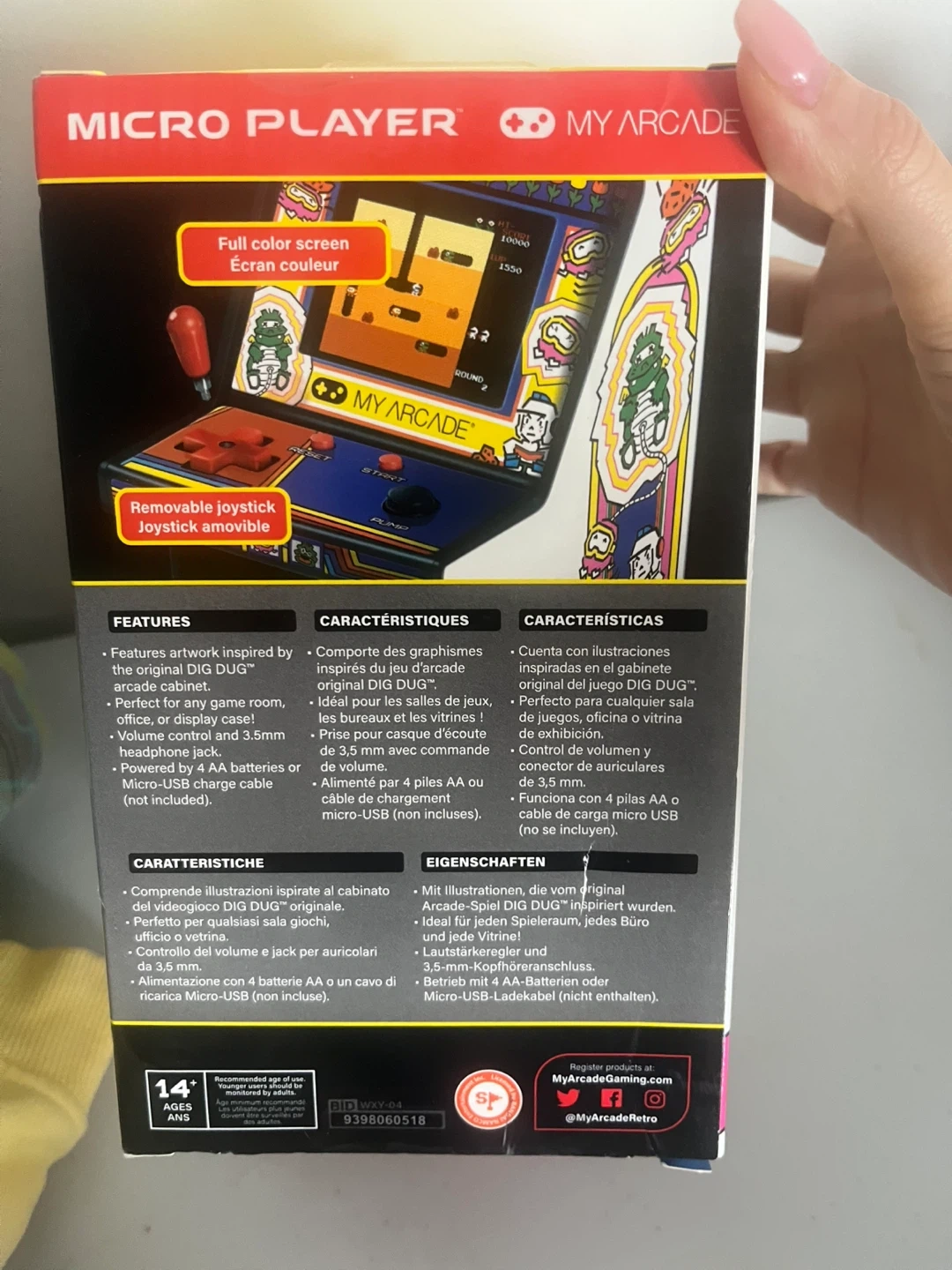 Selling a My Arcade Dig Dug Micro Player Retro Arcade. It features artwork inspired by the original Dig Dug arcade cabinet. It's perfect for any game room, office, or display case. There's also volume control and a 3.5mm headphone jack. Please note that it requires 4 AA batteries or a Micro-USB charge cable (not included). Recommended for ages 14+