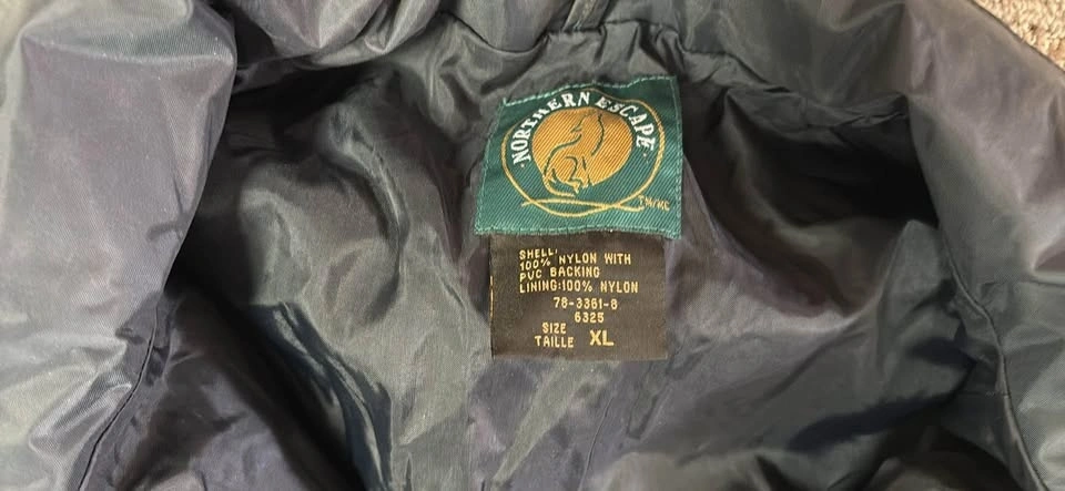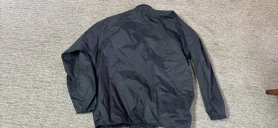 Lightweight Northern Escape black windbreaker jacket. Has full zip front and a comfy nylon shell with PVC backing. Lining is also nylon. Size XL.