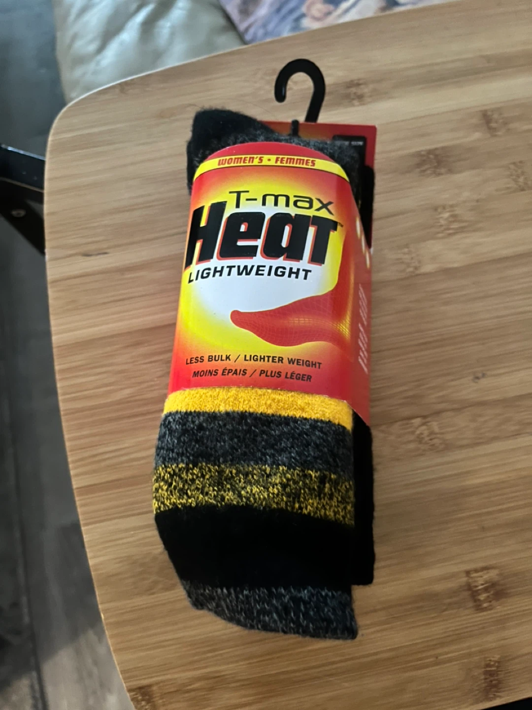 Here's a pair of T-max Heat lightweight women's socks! They're designed to be less bulky while still keeping your feet warm and cozy. Perfect for those chilly Canadian days!