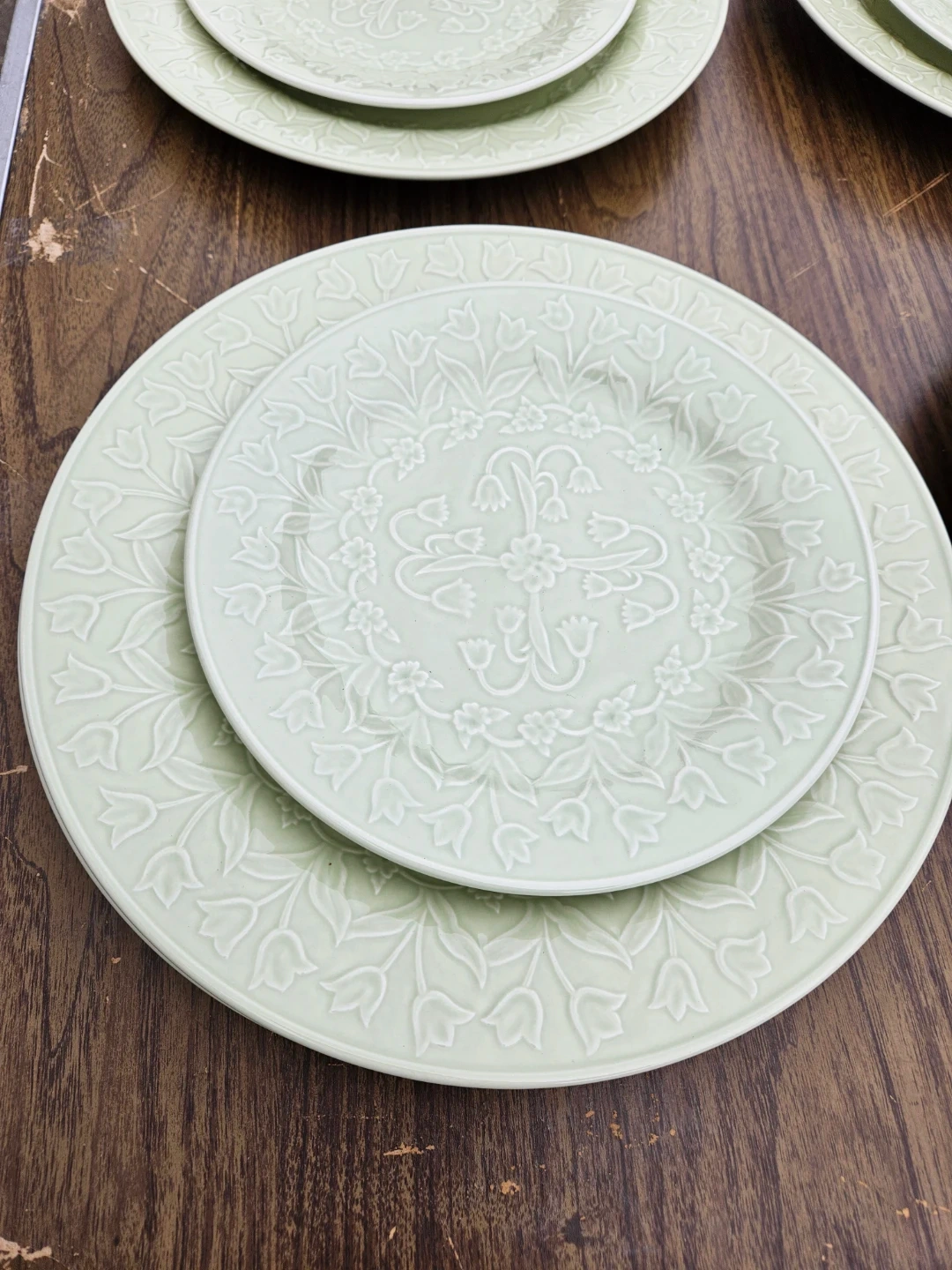 128 made in japan dishes. 2 different sets . One light yellow one light green. 32 dinner plates and 32 dessert plates green and 32 dinner 32 dessert yellow.. these are expensive vintage sets. Paid $1000.. Great condition used 2 times. $150 cash great price. .must pickup sheepshead bay brooklyn.