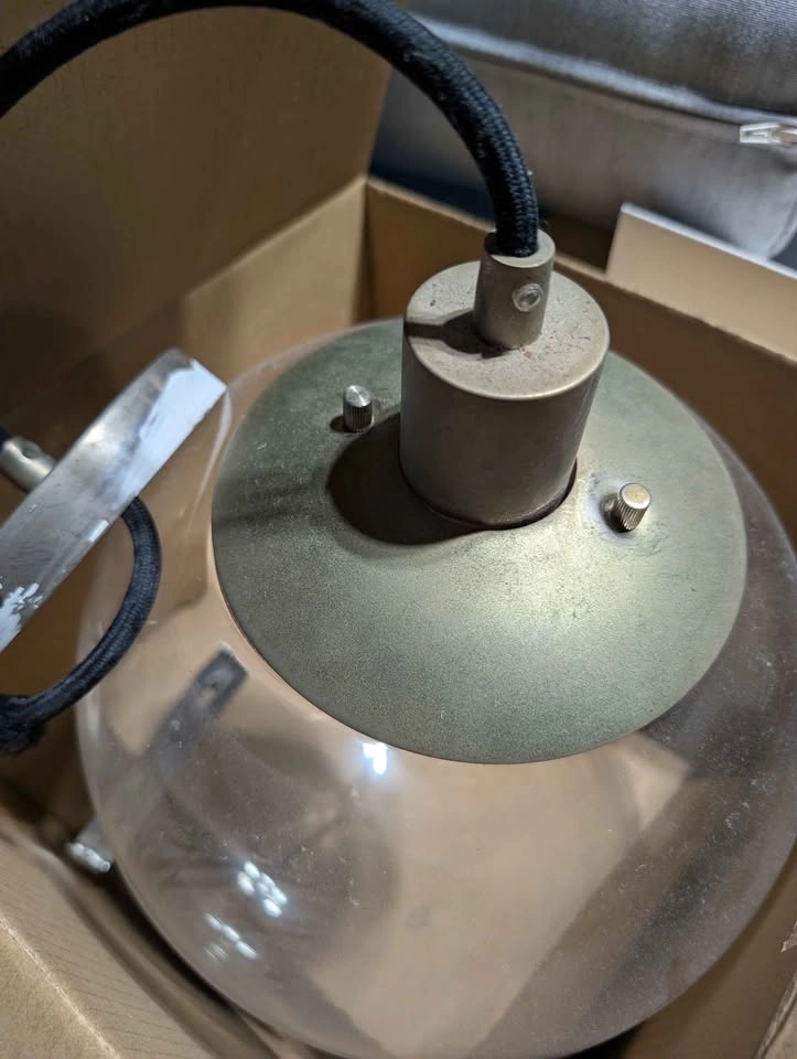 Vintage pair of West Elm glass globe pendants that we've replaced in our home. They need a little bit of cleaning but they should look great in your home as they did in ours.