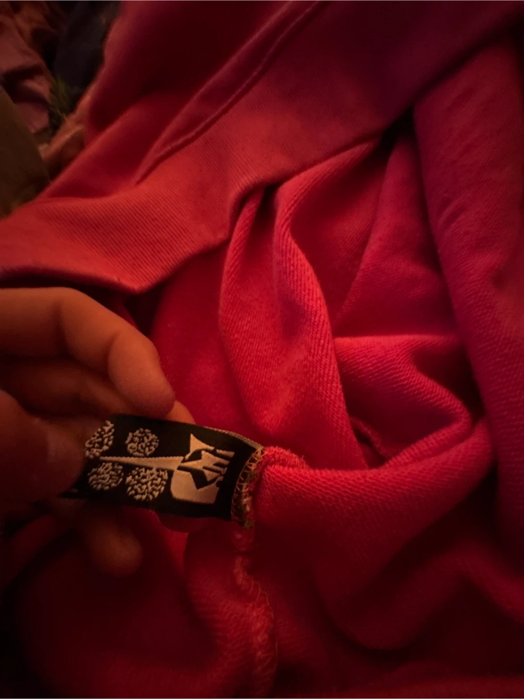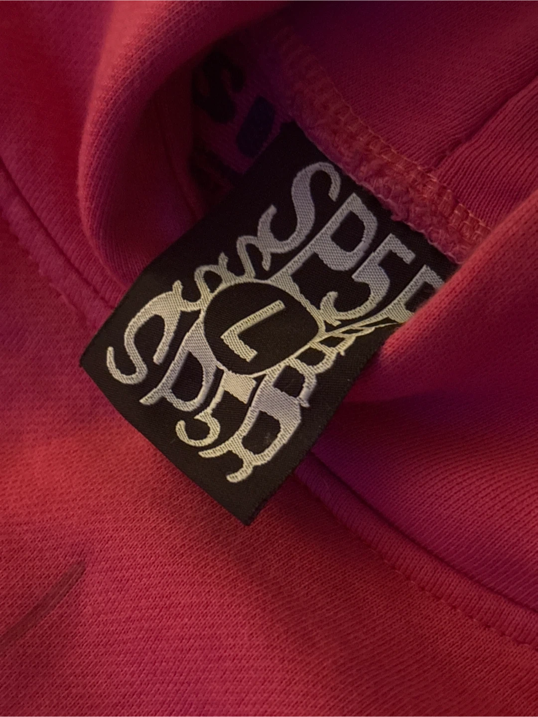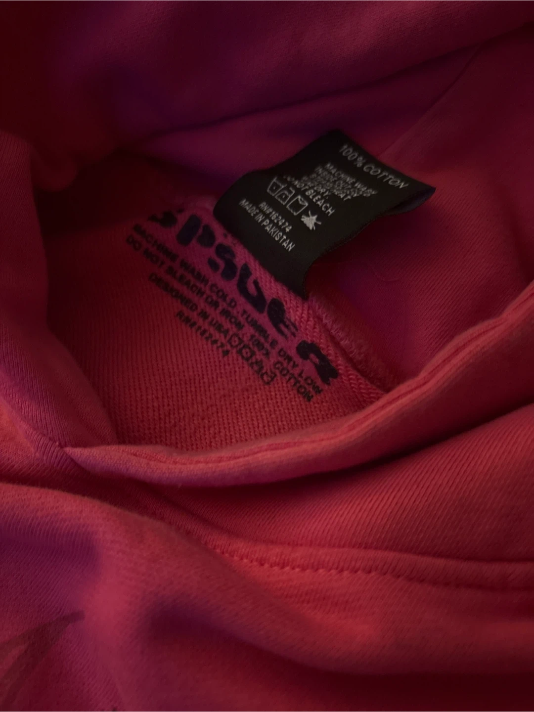 This is a bright pink hoodie from Pink Spider. It's made of 100% cotton and designed in the USA. The hoodie features a graphic print with beaded accents. It's a size large.