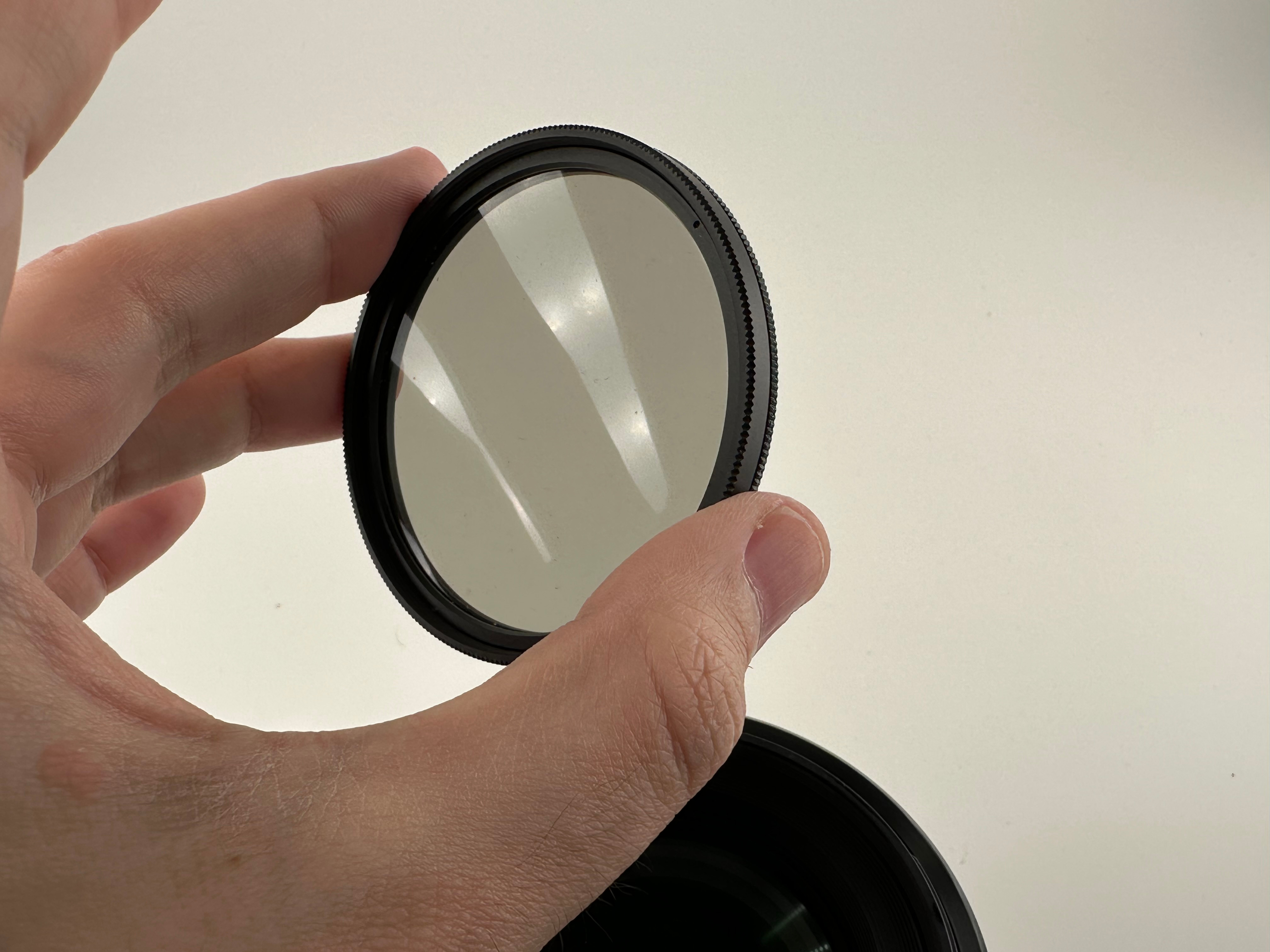 Included is the original lens hood and a fitting circular polariser filter with box for the filter.