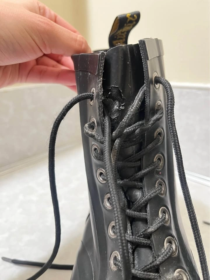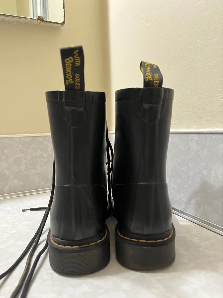 Selling my Dr. Martens black leather boots in Women’s Size 8. These boots are in excellent condition, no damage, no sole separation, no cracking, and very clean overall. The leather is in great shape and the boots are fully functional and ready to wear. Minor cosmetic detail shown in fourth picture: There is a small mark near the lace area on one side, the leather is slightly lifted from tightening the laces since they fit me a bit loose. It does not affect durability or comfort and is not visible when the boots are laced. I’m selling them because they fit me slightly roomy, otherwise I would keep them! Pickup: Metrotown area. Price: $70.