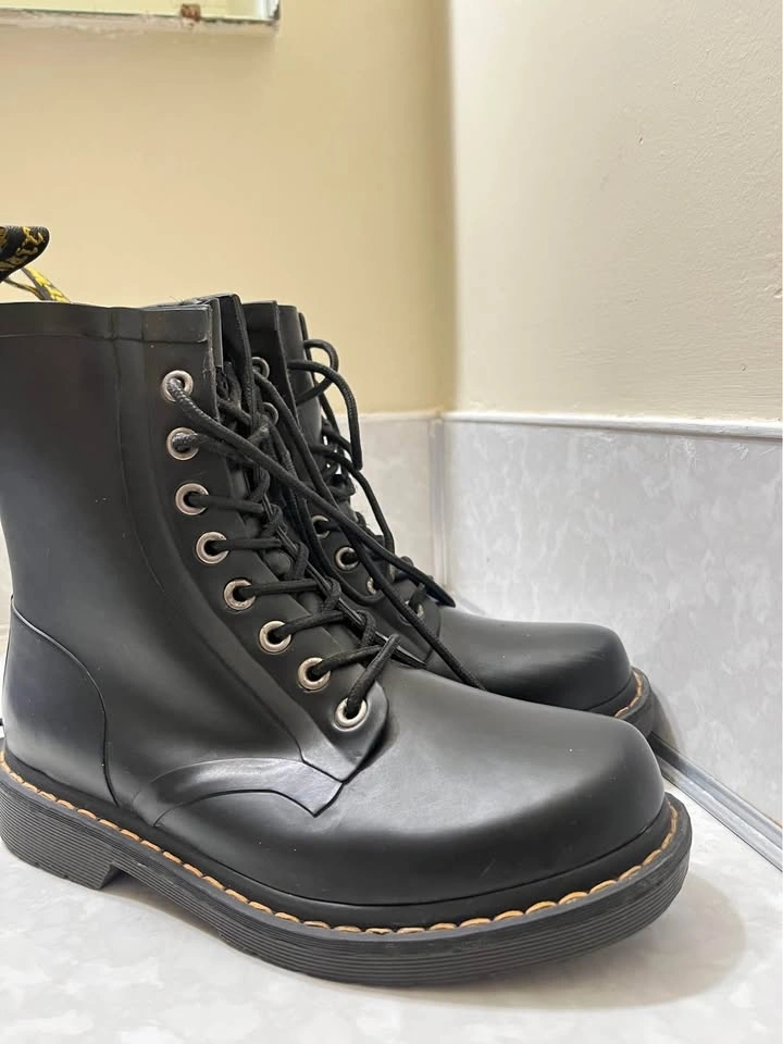 Selling my Dr. Martens black leather boots in Women’s Size 8. These boots are in excellent condition, no damage, no sole separation, no cracking, and very clean overall. The leather is in great shape and the boots are fully functional and ready to wear. Minor cosmetic detail shown in fourth picture: There is a small mark near the lace area on one side, the leather is slightly lifted from tightening the laces since they fit me a bit loose. It does not affect durability or comfort and is not visible when the boots are laced. I’m selling them because they fit me slightly roomy, otherwise I would keep them! Pickup: Metrotown area. Price: $70.