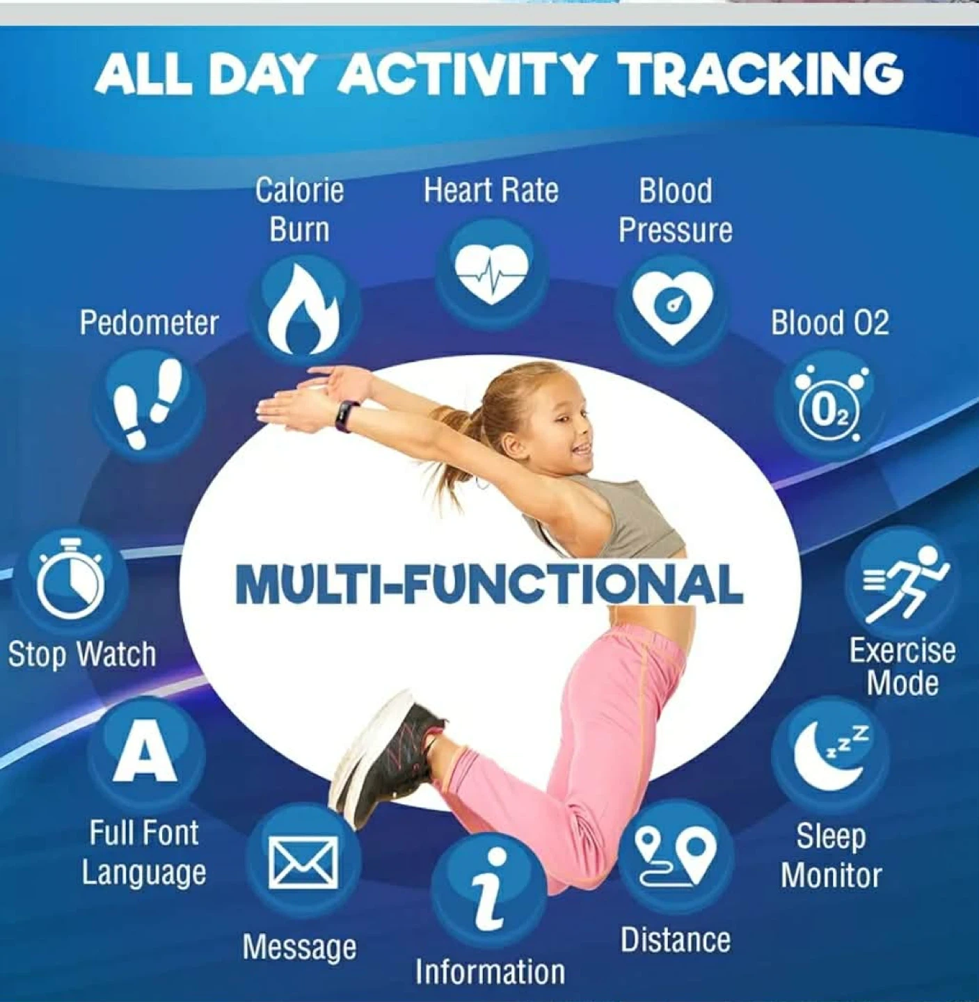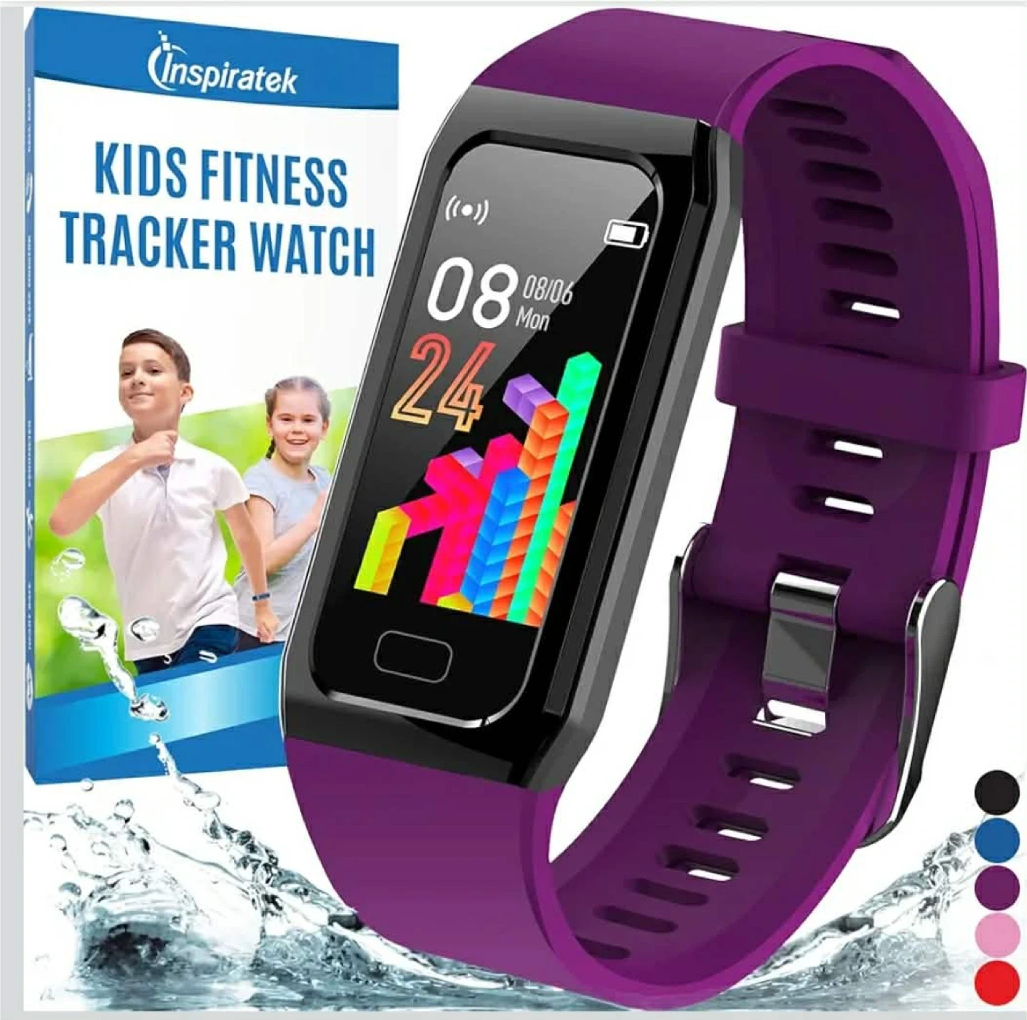 This Inspiratek kids fitness tracker watch is IP67 waterproof and durable. It tracks all-day activity, including pedometer, heart rate, and sleep monitor. It's suitable for all day play and comfortable for kids.