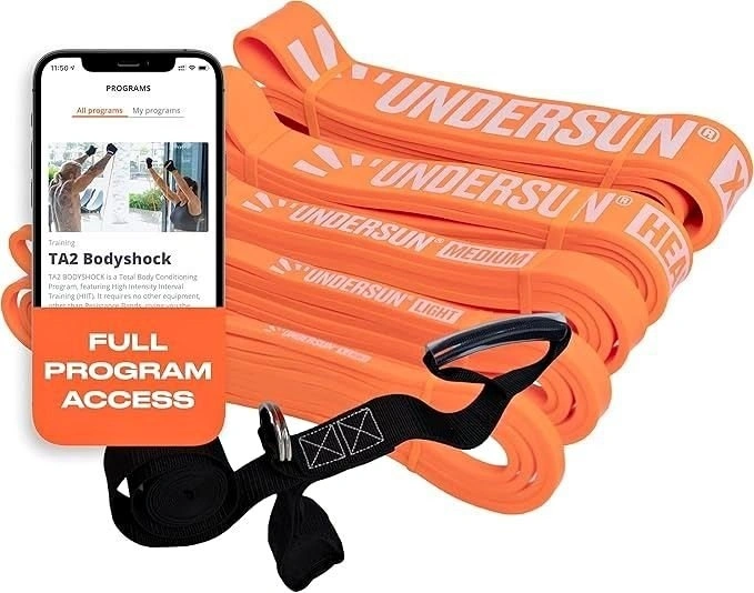 Brand new in box. Undersun Fitness Home Workout Bands - Resistance Bands for Exercise, Stretching, Weight Loss, Fat Burning & Body Toning. Set of 5 with TA2 Bodyshock Training Program & Door Anchor. Feel free to message if you have any questions!