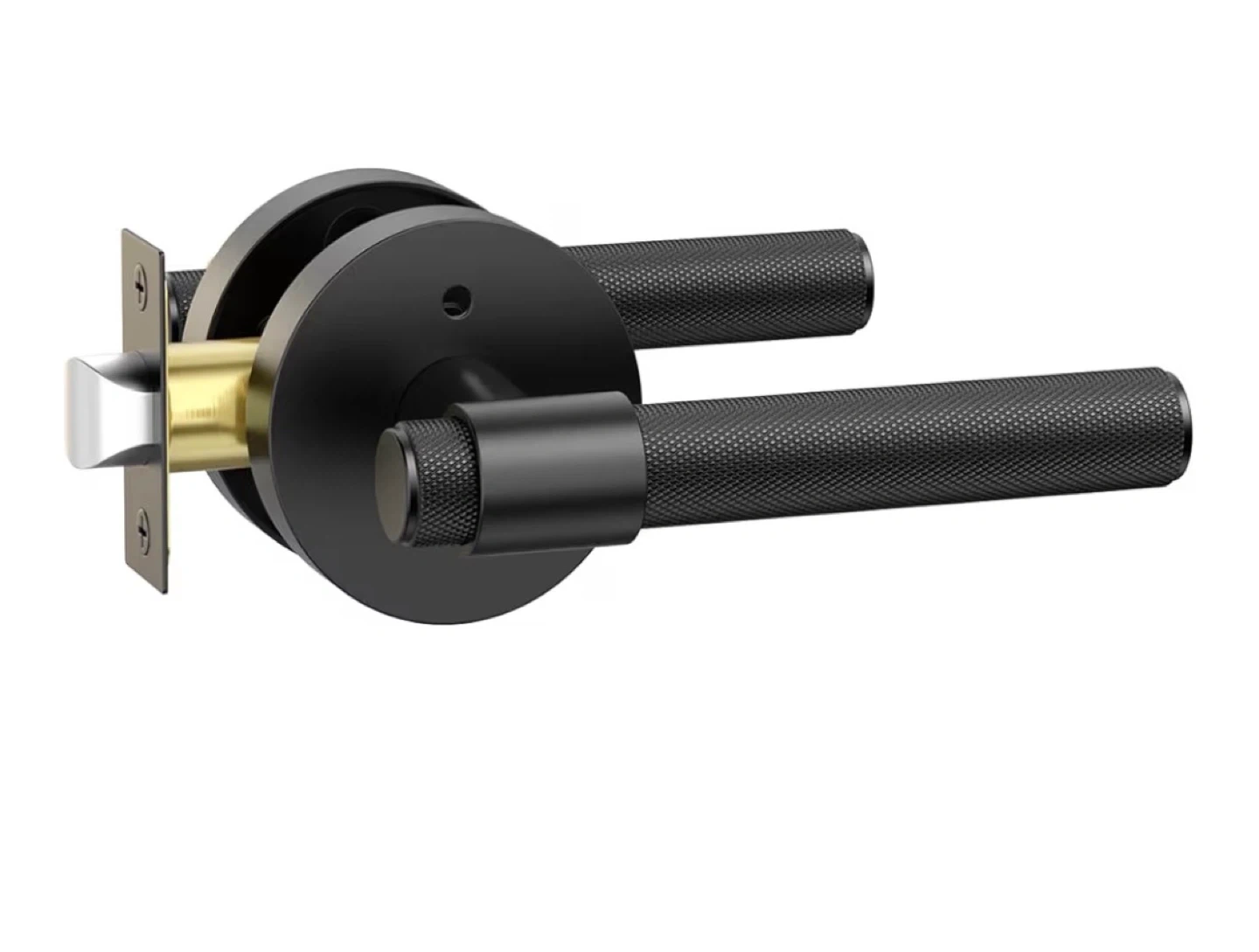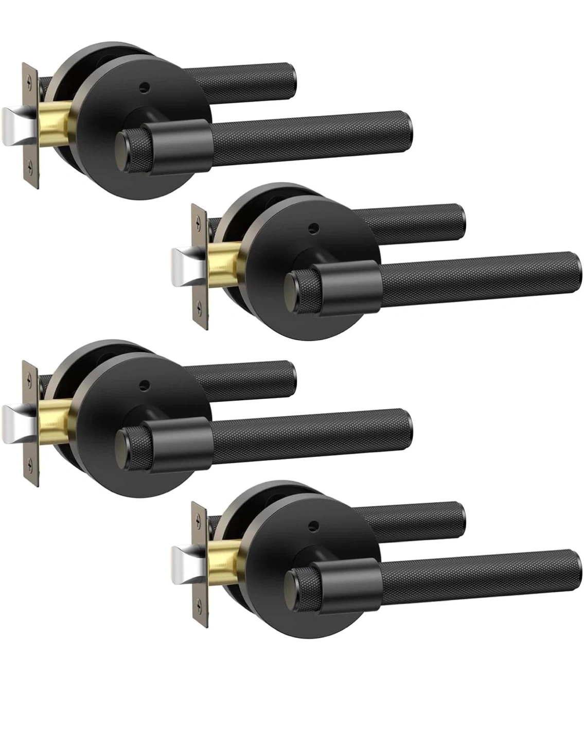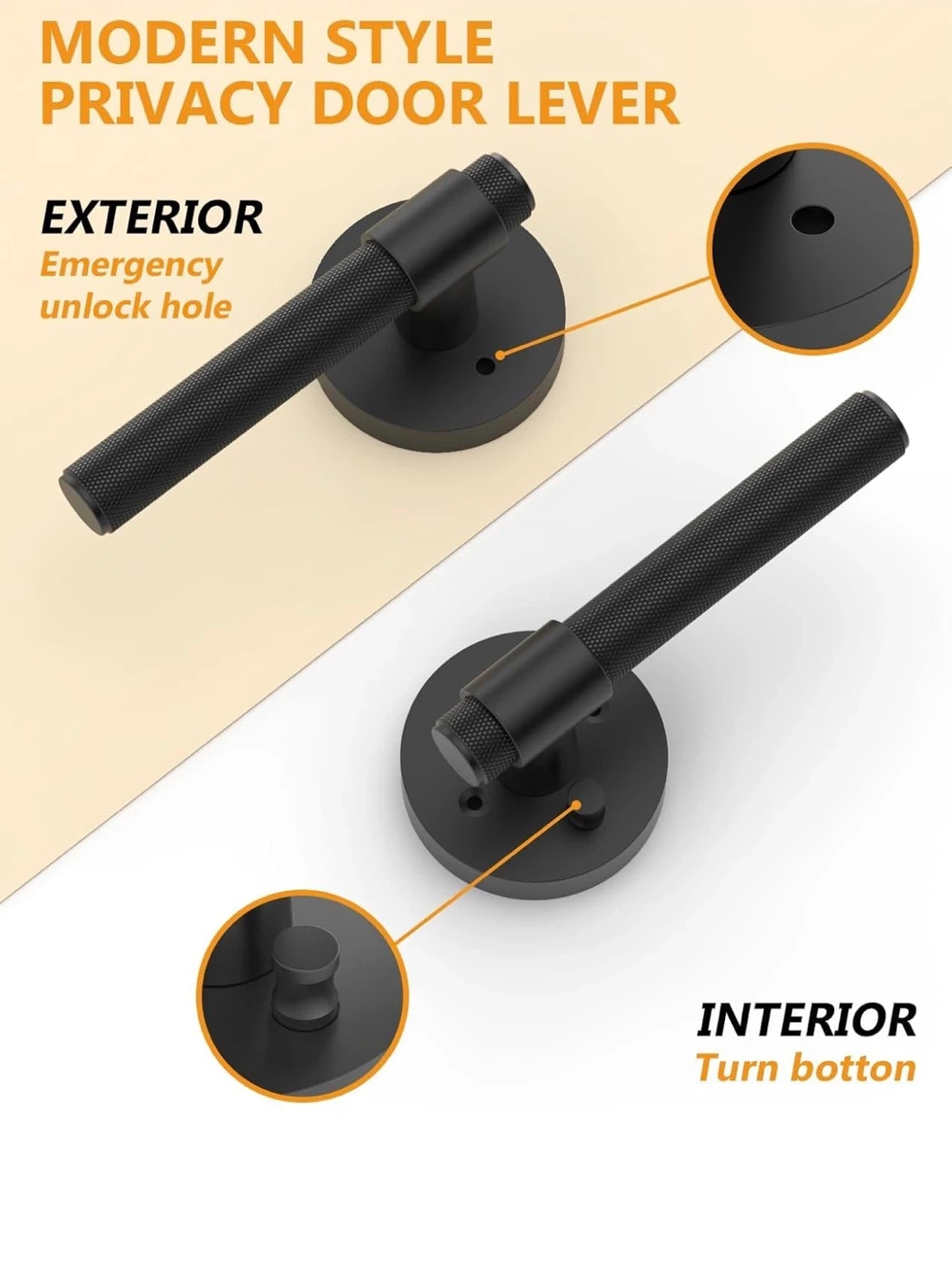 Asidrama Privacy Black Knurled Door Handles, Door Lever with Door Knobs Indoor for Bedroom or Bathroom, Heavy Duty Matter Black Door Handles Interior with Locks for Left Right Sided Doors