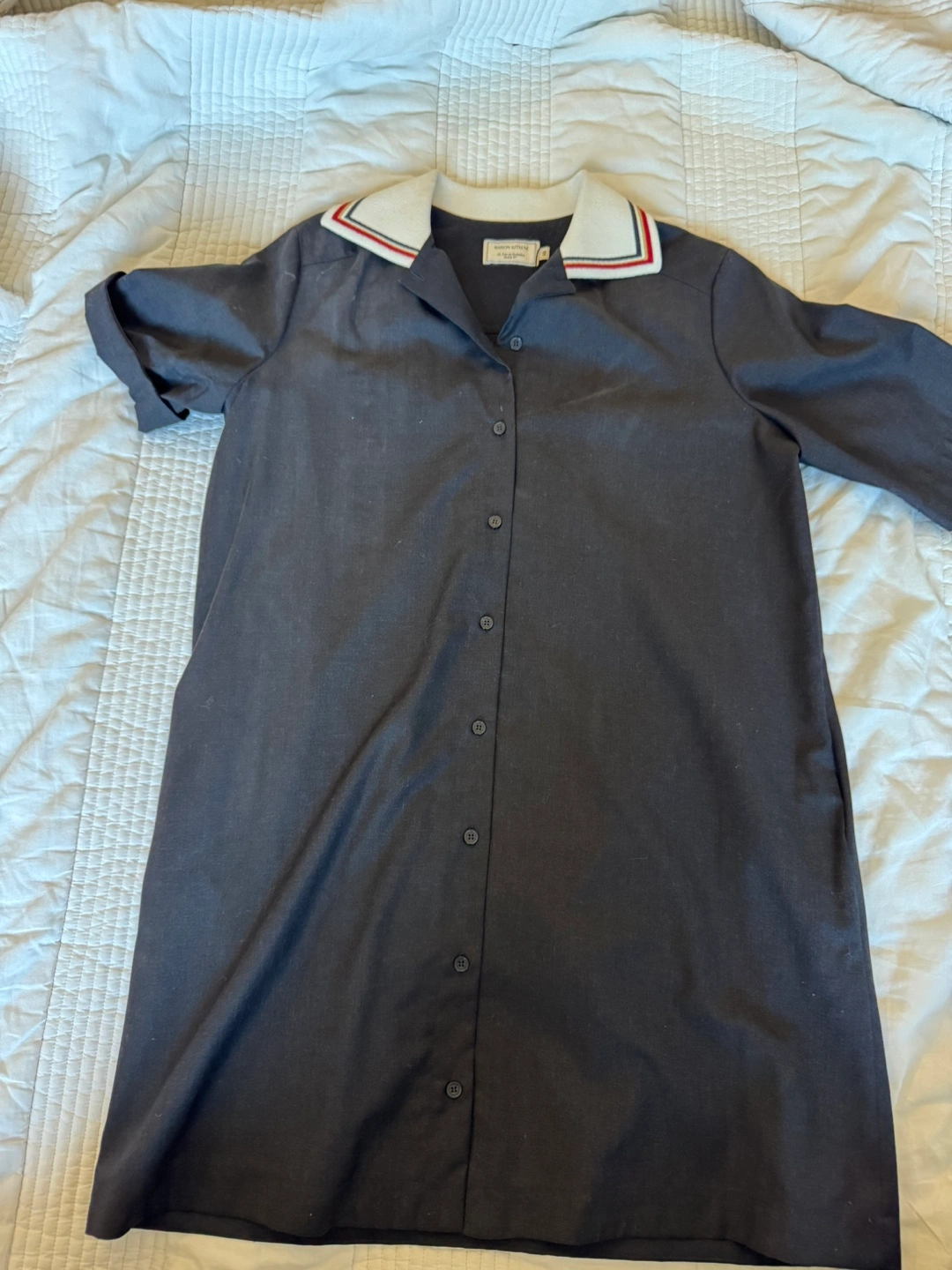Selling a Maison Kitsune Paris dress in size 40. It's made from 100% Virgin Wool for the fabric and 100% Cotton for the lining. It's a stylish and comfortable piece!