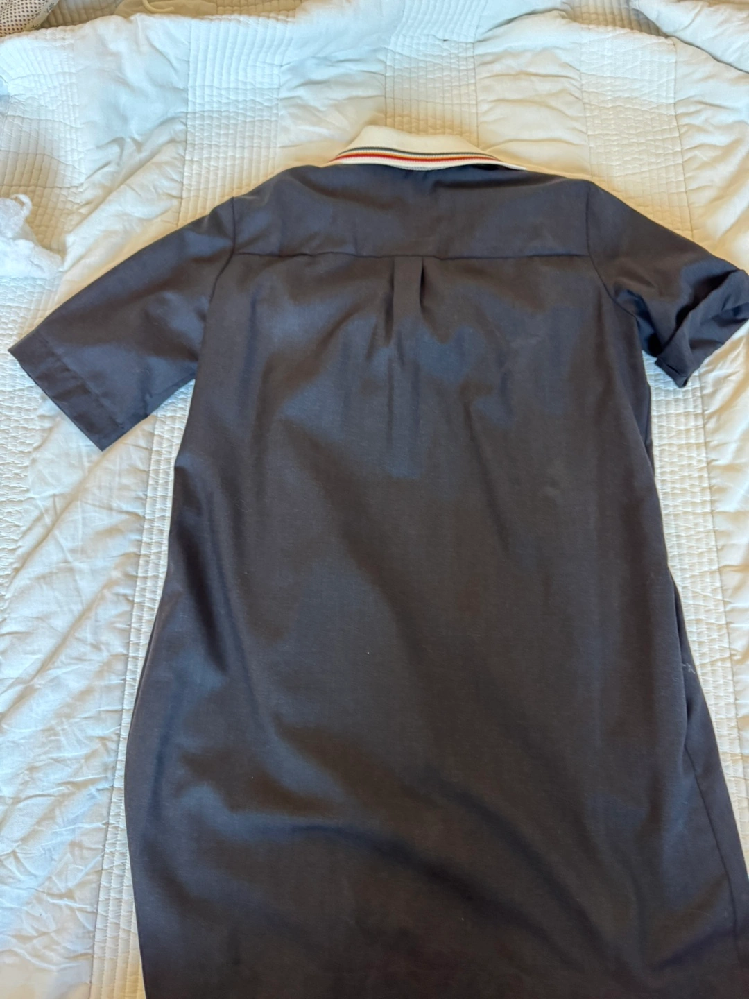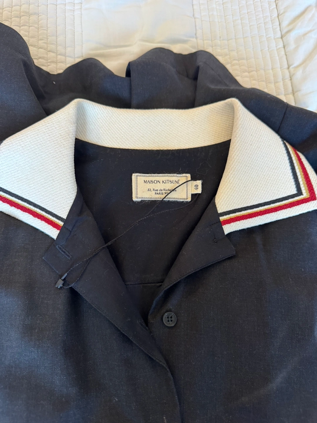 Selling a Maison Kitsune Paris dress in size 40. It's made from 100% Virgin Wool for the fabric and 100% Cotton for the lining. It's a stylish and comfortable piece!