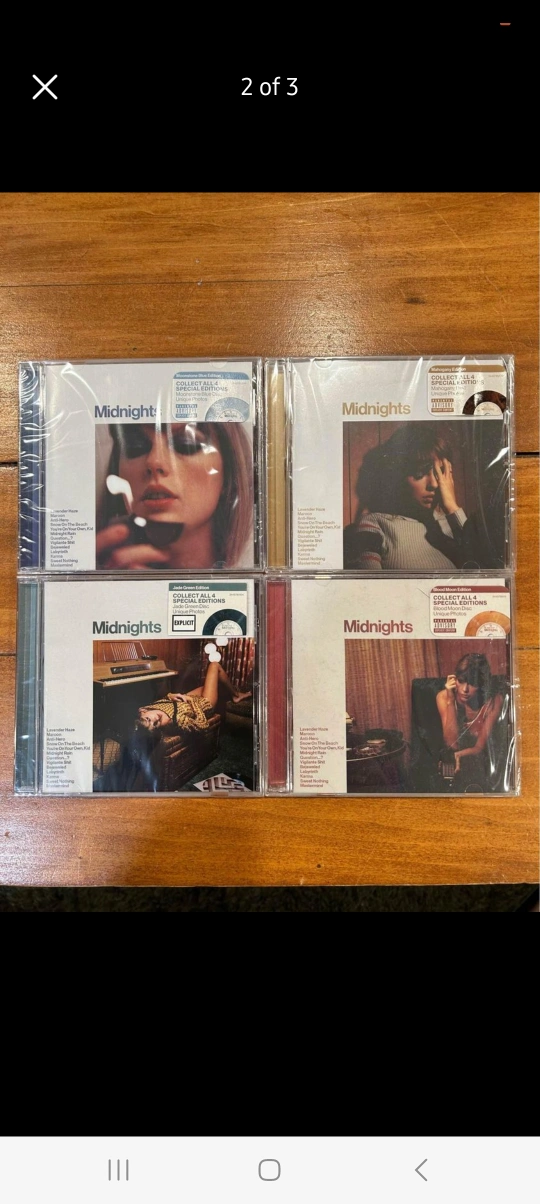 πŸŒ™βœ¨ Taylor Swift's "Midnights" CDs Sale! πŸŽΆπŸ’Ώ Elevate your nights with the enchanting tunes of Taylor Swift's "Midnights"! 🌟 I'm offering 4 CDs for just $100! πŸŽ‰ Dive into the magical world of Taylor's music and let the melodies sweep you away. 🎡 Limited stock, so grab your set now! πŸš€ DM me to bring the magic home. πŸŒŒπŸ’– #TaylorSwift #MidnightsCDs #MusicMagic #LimitedOffer πŸŒ™πŸŽ Delivery is possible by adding 10 dollars all over Ontario..