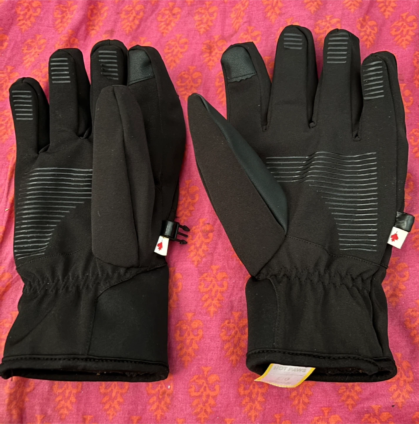 Selling a pair of Hot Paws gloves in adult size large. They're in great shape and ready to keep your hands warm this winter. The gloves feature a small Canadian flag detail.
