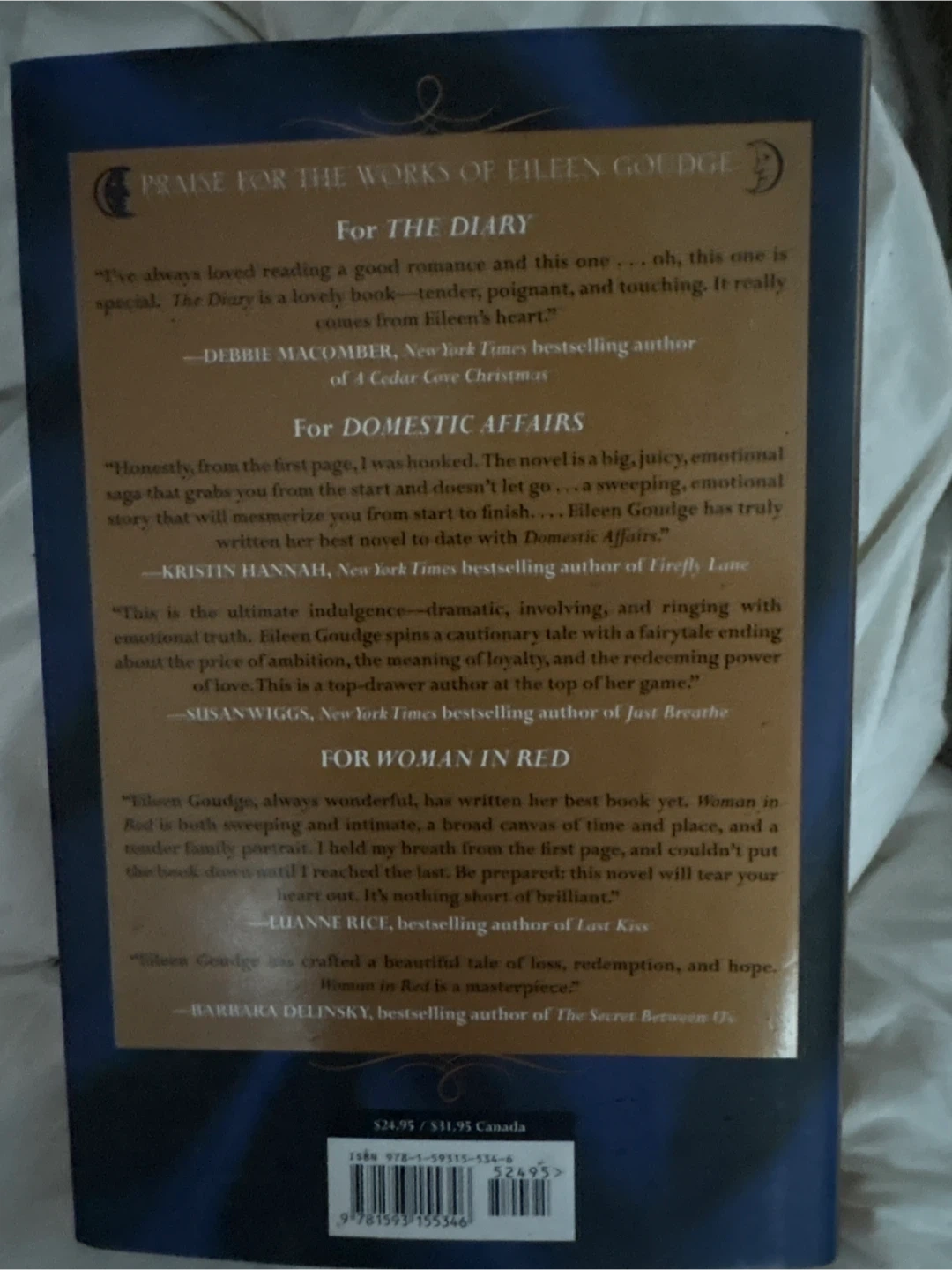 Selling the novel 'Once in a Blue Moon' by Eileen Goudge. It's a captivating read from the New York Bestselling author of 'Woman in Red'. A gifted writer with an eye for telling detail! Price is negotiable