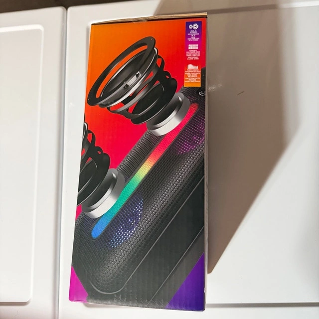 This JAM TIME wireless speaker system is new in the box, never opened, and ready to bring the party to life with its vibrant colour-changing lights! This system includes a microphone with built-in storage and boasts a wireless range of 10 meters. Feel free to message if you have any questions!
