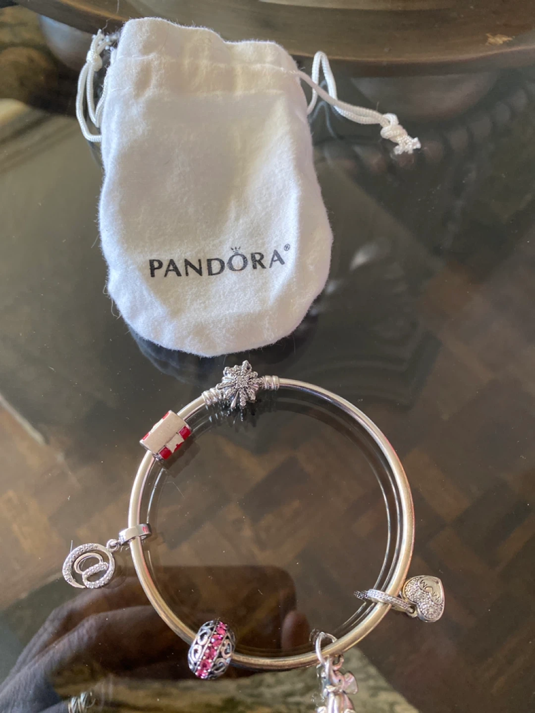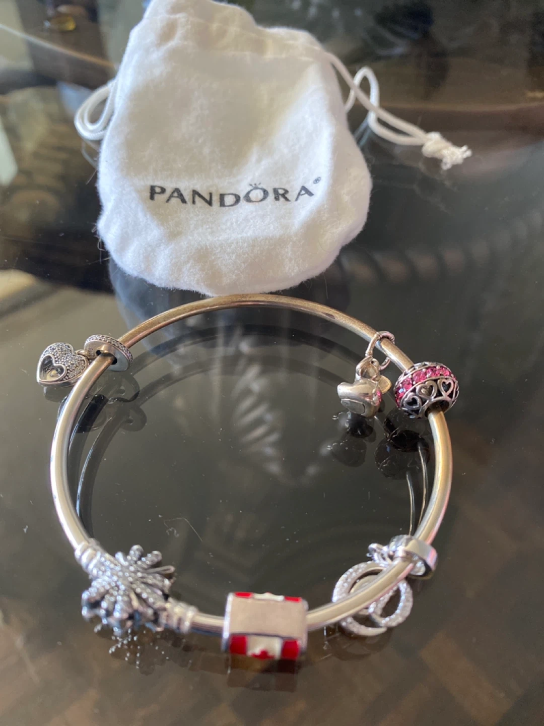 Buy & SellPandora BracletPandora Braclet$100Genuine Pandora Sterling Silver Bangle Bracelet with white cubic zirconia clasp with 5 charms.ConditionLike newWHERE TO MEETCedarbrea mallView MapSELLERKenGolfdale Gardens43134 reviews0 chats·0 favorites·21 viewsSEND CHAT TO SELLERHi Ken! I’m interested in your listing.Hi Ken! I’m interested in your listing.Get the Karrot app to chatSign In to chat