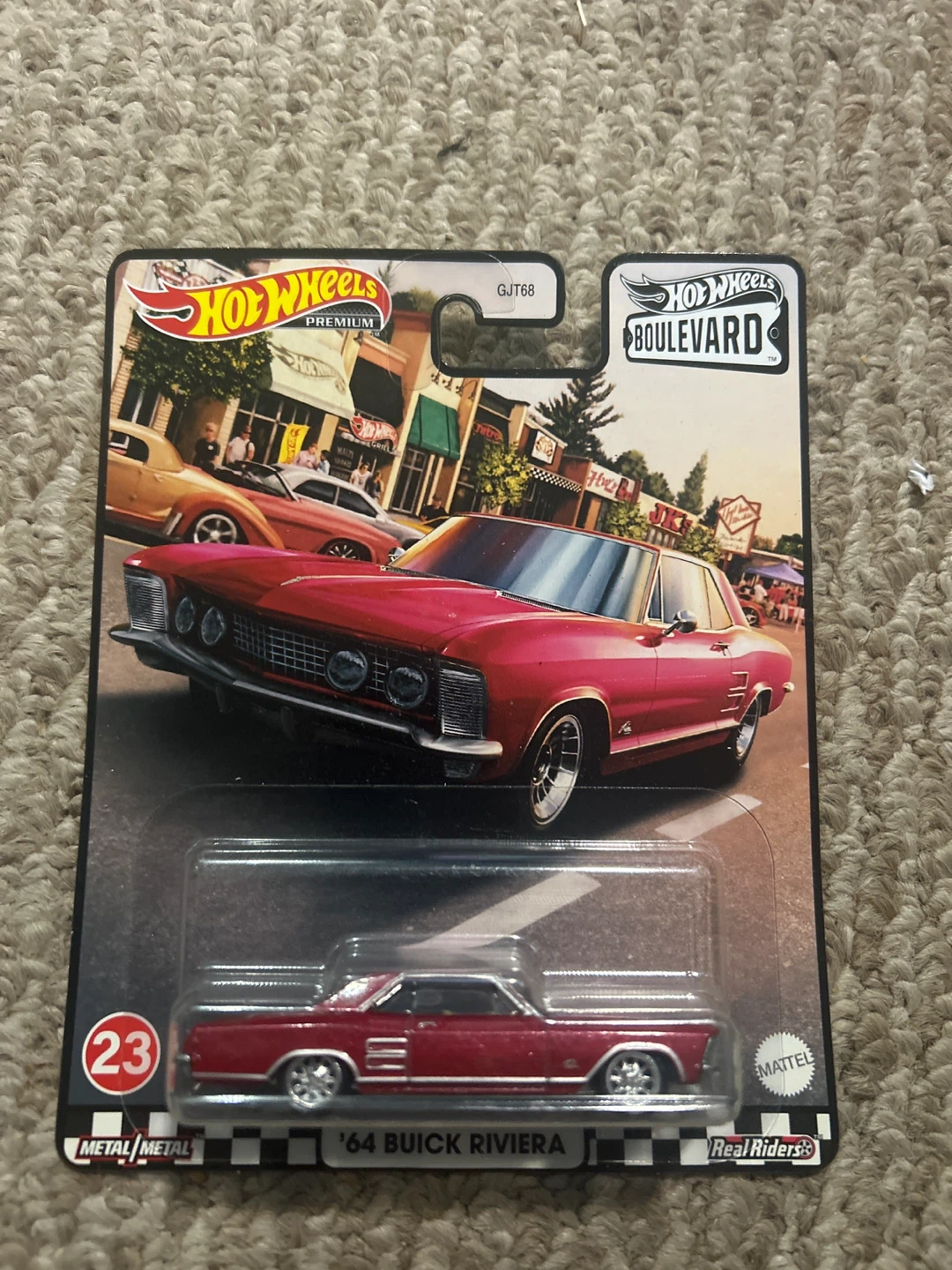 This is a Hot Wheels Boulevard Premium die-cast model of a '64 Buick Riviera. It's part of the Real Riders series. Metal base and body.