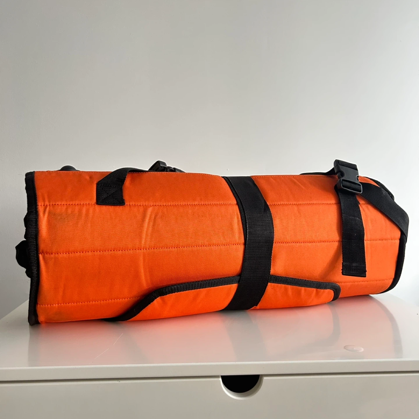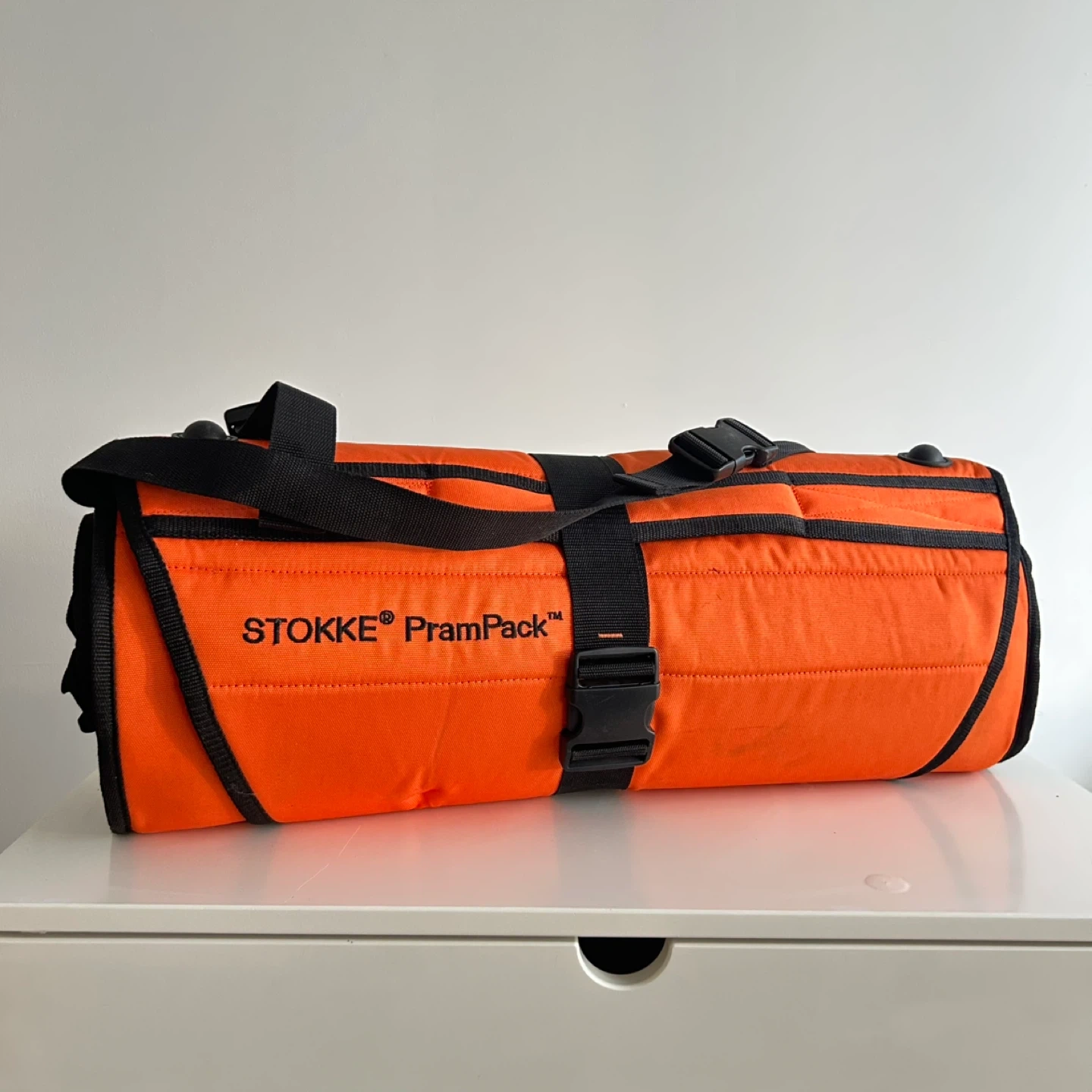 Stokke PramPack travel bag for your stroller. Bright orange colour. It's durable and protects your pram during travel.