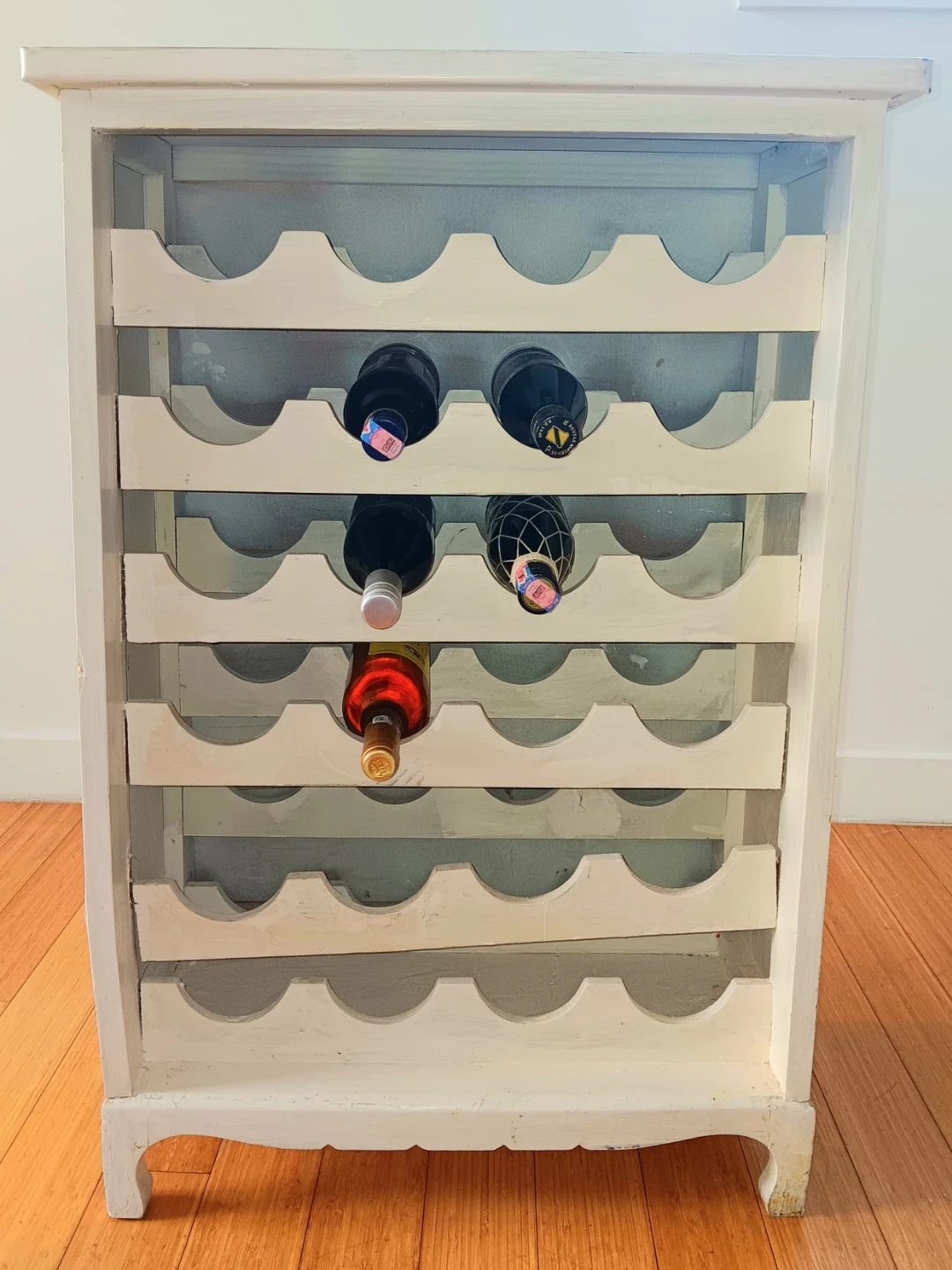 Vintage Wooden Wine Rack Cabinet with Decorative Tile Top