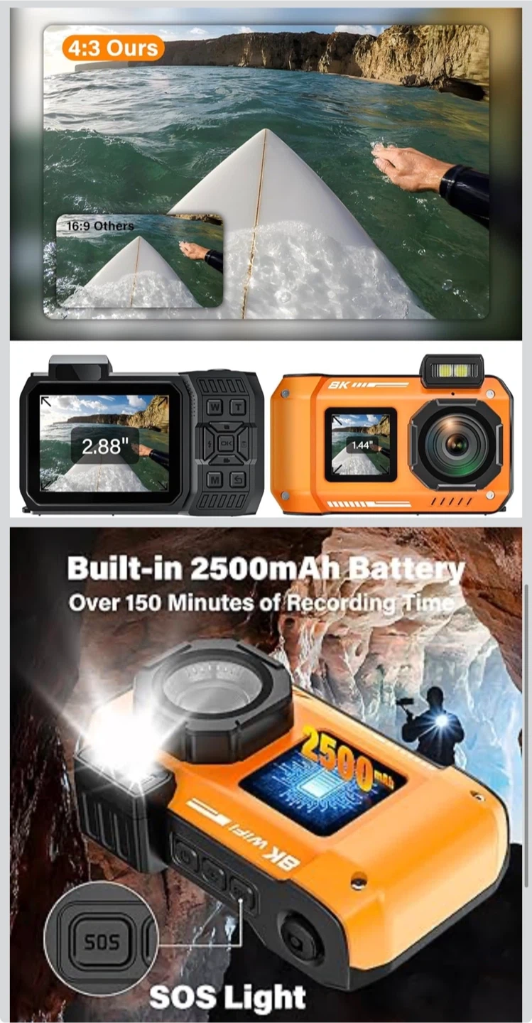 - Built-in 2500mAh Battery with over 150 minutes of recording time