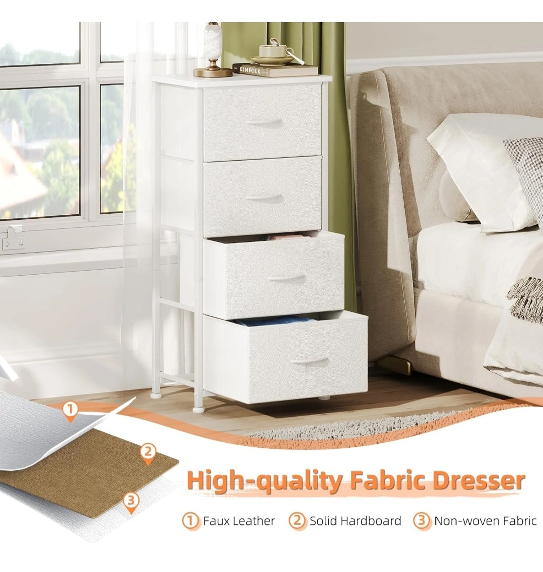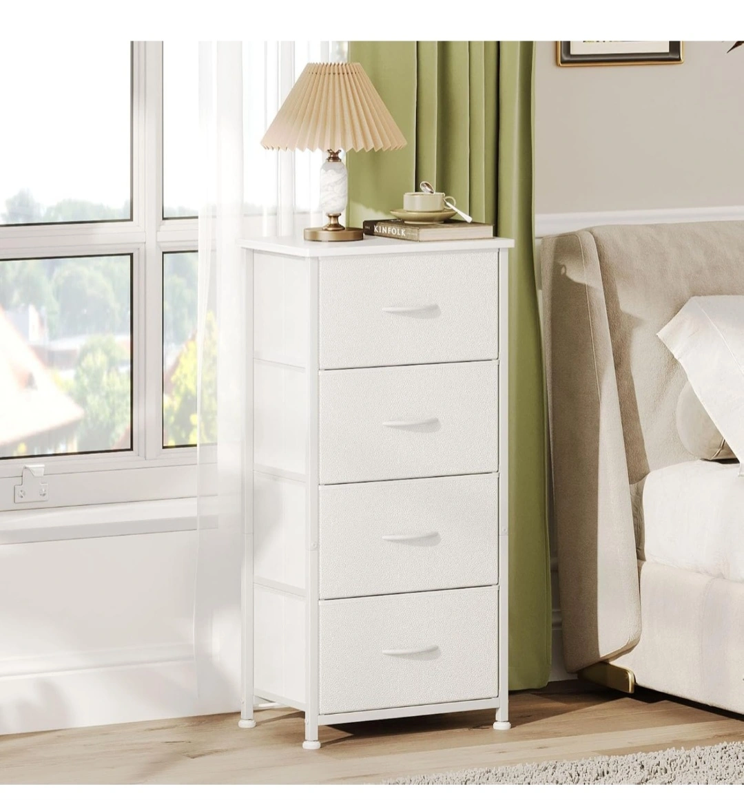 4 Drawer Tall Dresser, Small Dresser for Bedroom Entryway Hallway, Closet Storage Drawer, Commode De Chambre, Armoire De Rangement, White