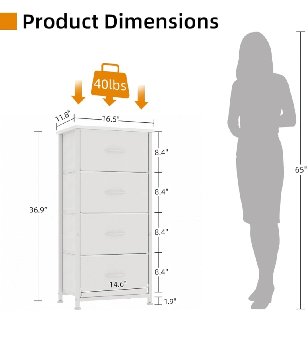 White Fabric 4-Drawer Dresser