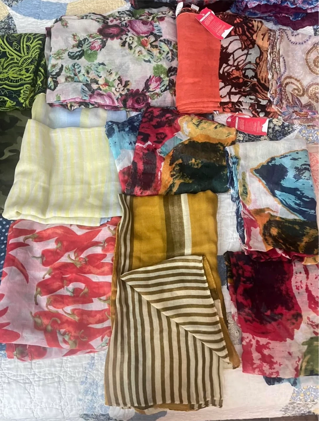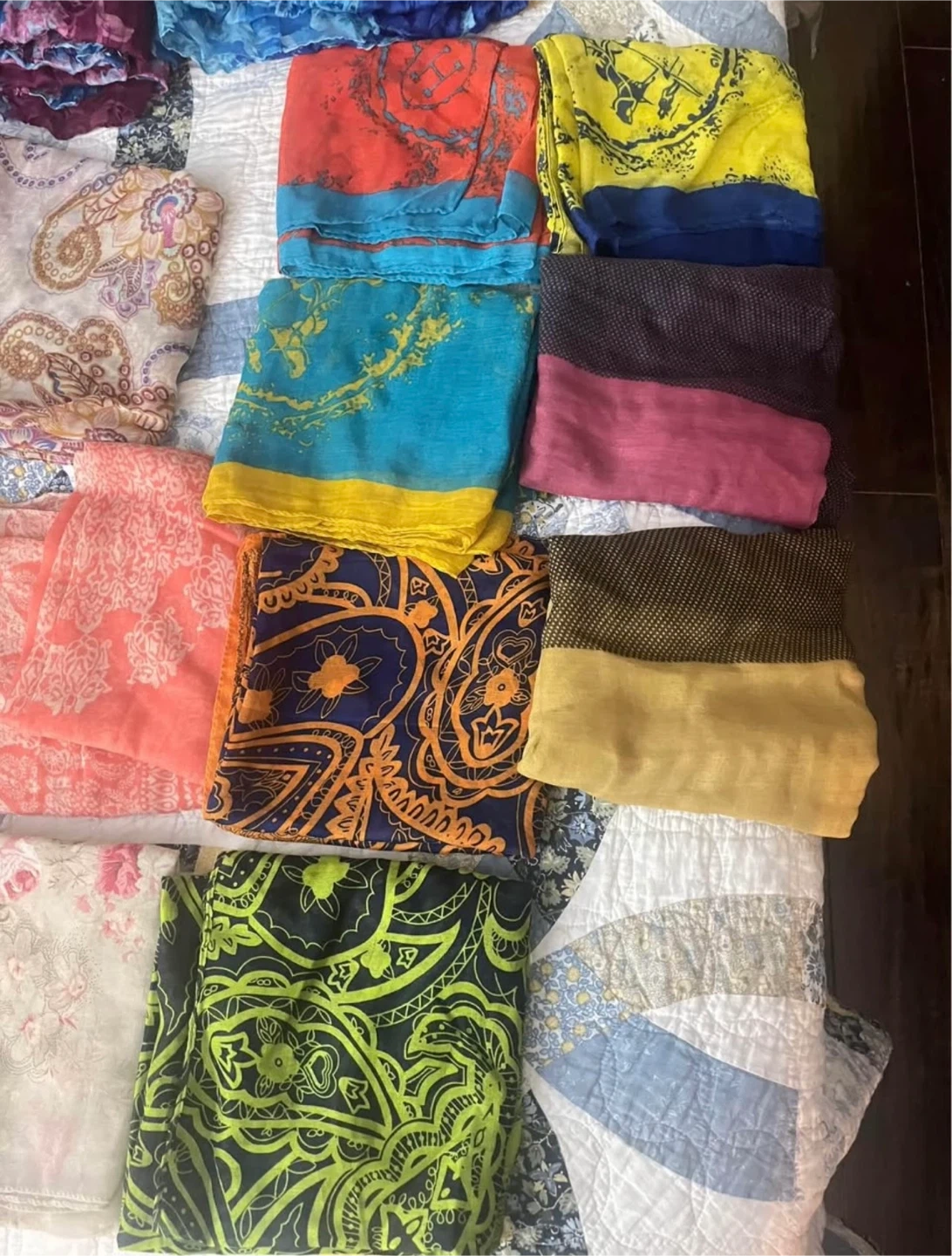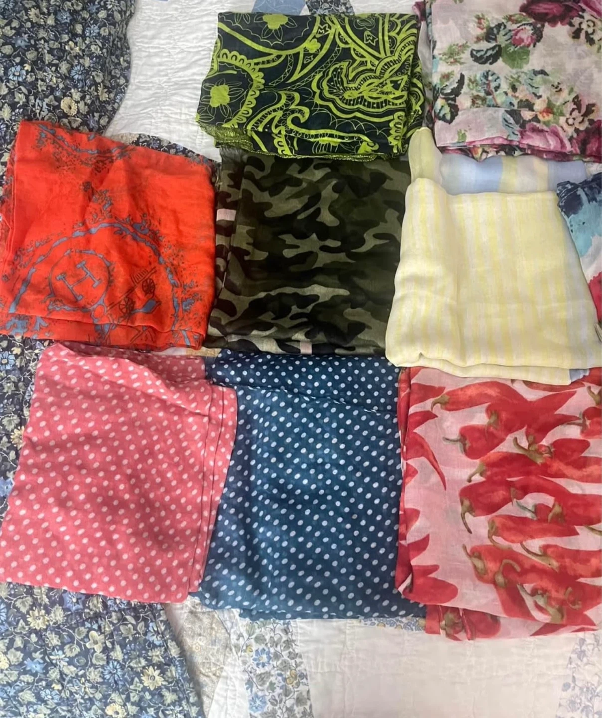 Selling a collection of scarves in various colours and patterns. They're in great condition and ready to add some flair to your wardrobe!
